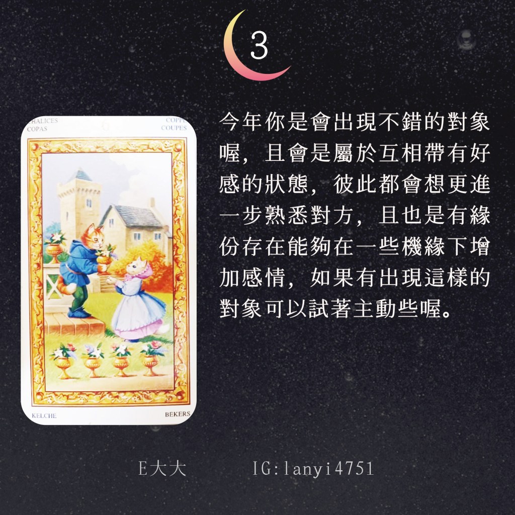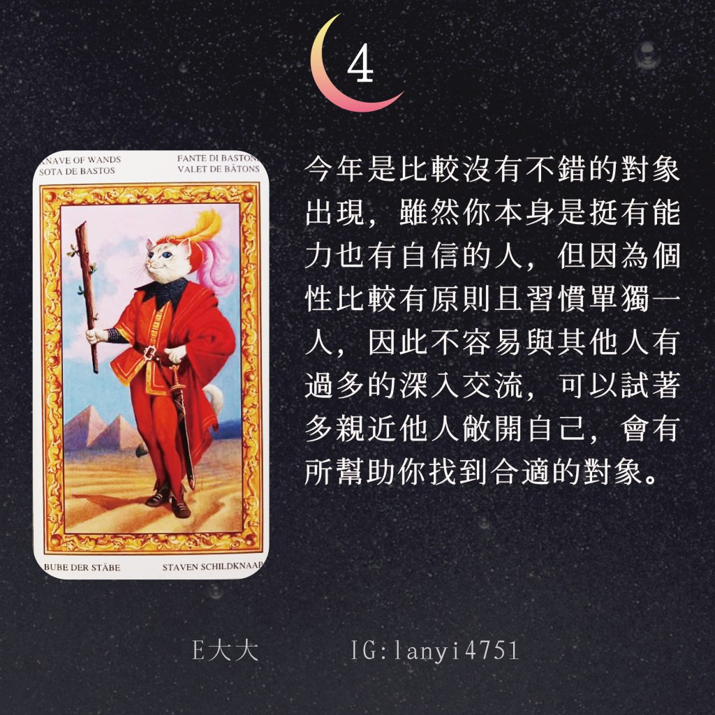 哈囉大家好嗎?我是E大大唷~直言直語的塔羅牌占卜師!偶爾也會分享多年來累積的知識及經驗,讓大家能夠更了解塔羅牌這回事。日後E大會維持每日一更大眾占卜or心理測驗(除非我太累啦😂)歡迎關注追蹤我囉!https://linktr.ee/lanyi47511