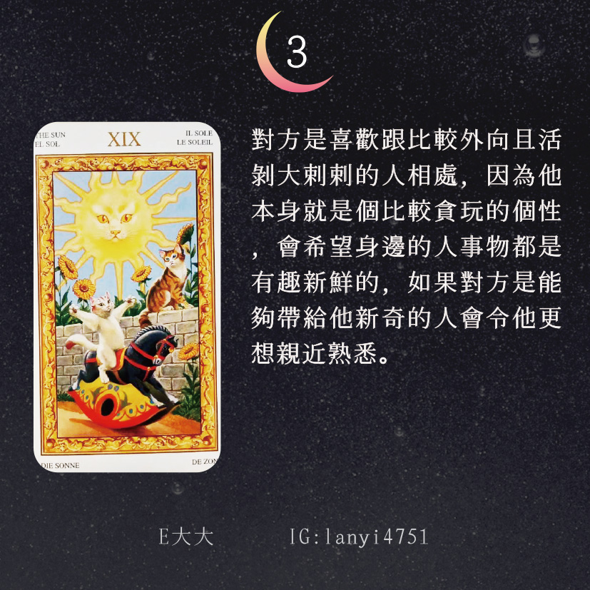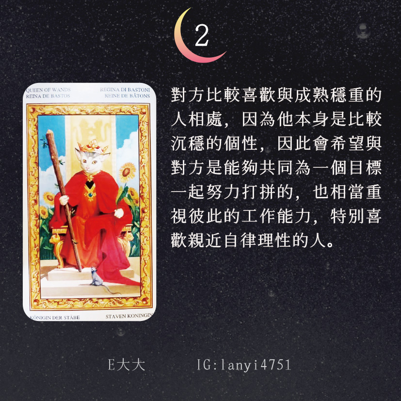 哈囉大家好嗎?我是E大大唷~直言直語的塔羅牌占卜師!偶爾也會分享多年來累積的知識及經驗,讓大家能夠更了解塔羅牌這回事。日後E大會維持每日一更大眾占卜or心理測驗(除非我太累啦😂)歡迎關注追蹤我囉!https://linktr.ee/lanyi47511