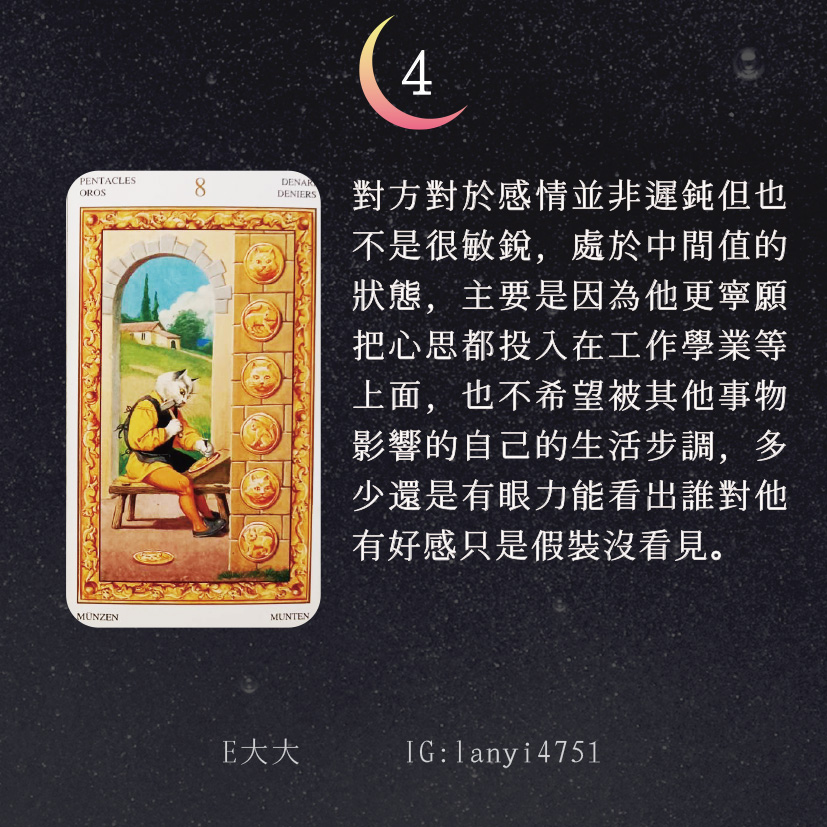 哈囉大家好嗎?我是E大大唷~直言直語的塔羅牌占卜師!偶爾也會分享多年來累積的知識及經驗,讓大家能夠更了解塔羅牌這回事。日後E大會維持每日一更大眾占卜or心理測驗(除非我太累啦😂)歡迎關注追蹤我囉!https://linktr.ee/lanyi47511