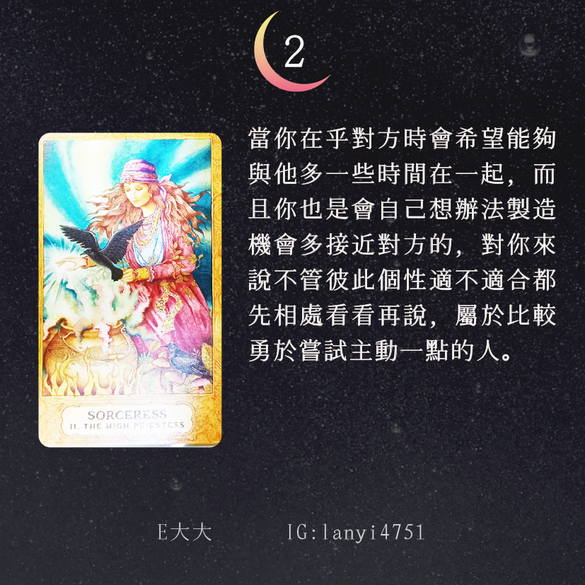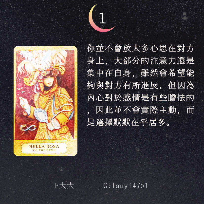 哈囉大家好嗎?我是E大大唷~直言直語的塔羅牌占卜師!偶爾也會分享多年來累積的知識及經驗,讓大家能夠更了解塔羅牌這回事。日後E大會維持每日一更大眾占卜or心理測驗(除非我太累啦😂)歡迎關注追蹤我囉!https://linktr.ee/lanyi47511
