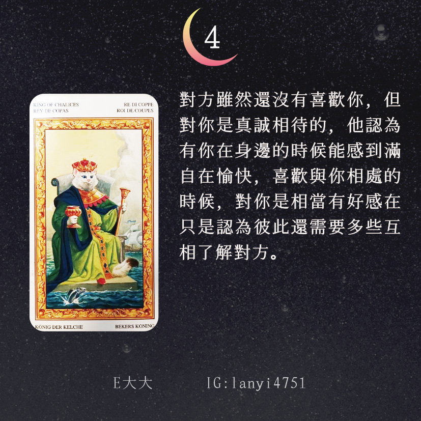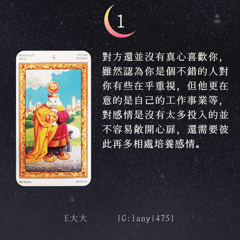 哈囉大家好嗎?我是E大大唷~直言直語的塔羅牌占卜師!偶爾也會分享多年來累積的知識及經驗,讓大家能夠更了解塔羅牌這回事。日後E大會維持每日一更大眾占卜or心理測驗(除非我太累啦😂)歡迎關注追蹤我囉!https://linktr.ee/lanyi47511