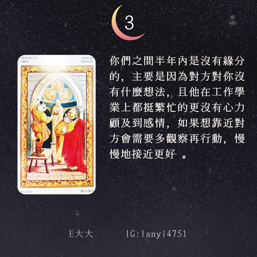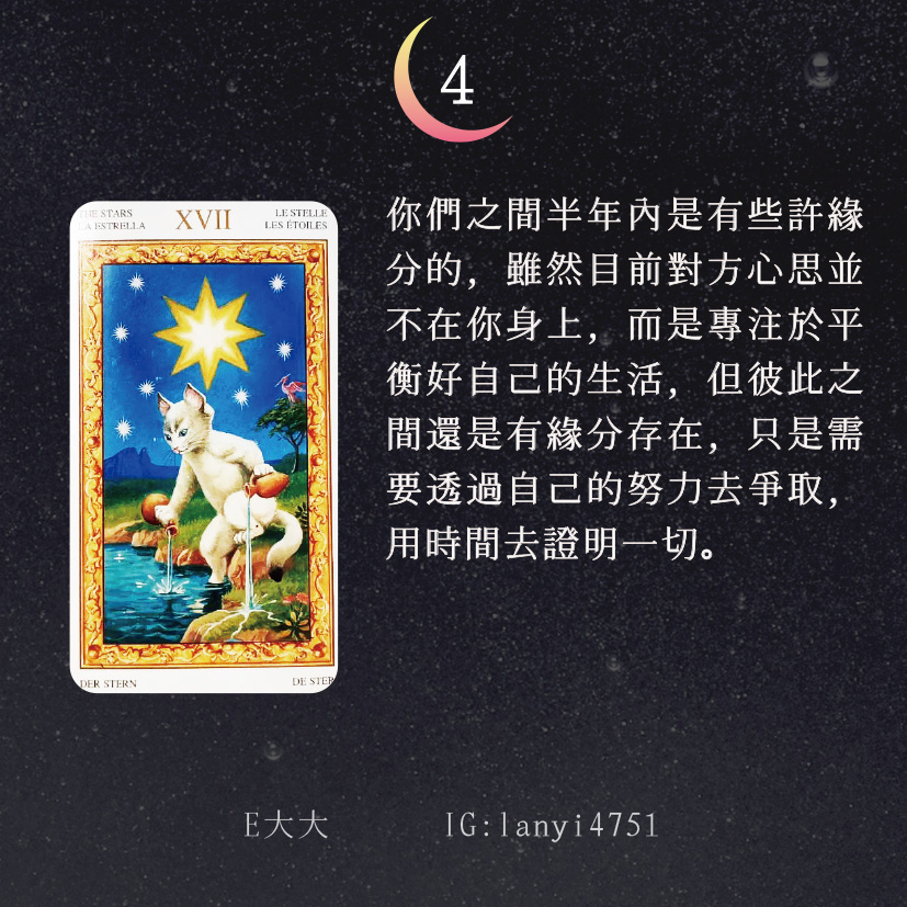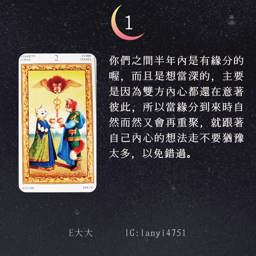 哈囉大家好嗎?我是E大大唷~直言直語的塔羅牌占卜師!偶爾也會分享多年來累積的知識及經驗,讓大家能夠更了解塔羅牌這回事。日後E大會維持每日一更大眾占卜or心理測驗(除非我太累啦😂)歡迎關注追蹤我囉!https://linktr.ee/lanyi47511