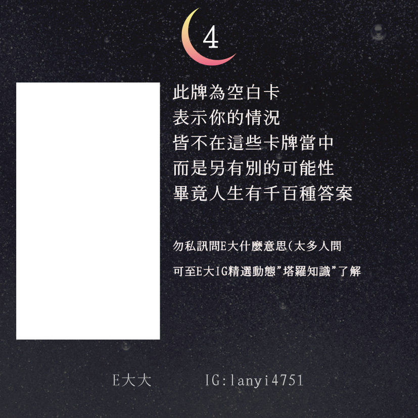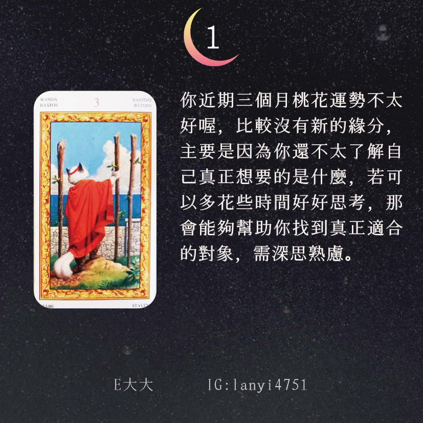 哈囉大家好嗎?我是E大大唷~直言直語的塔羅牌占卜師!偶爾也會分享多年來累積的知識及經驗,讓大家能夠更了解塔羅牌這回事。日後E大會維持每日一更大眾占卜or心理測驗(除非我太累啦😂)歡迎關注追蹤我囉!https://linktr.ee/lanyi47511