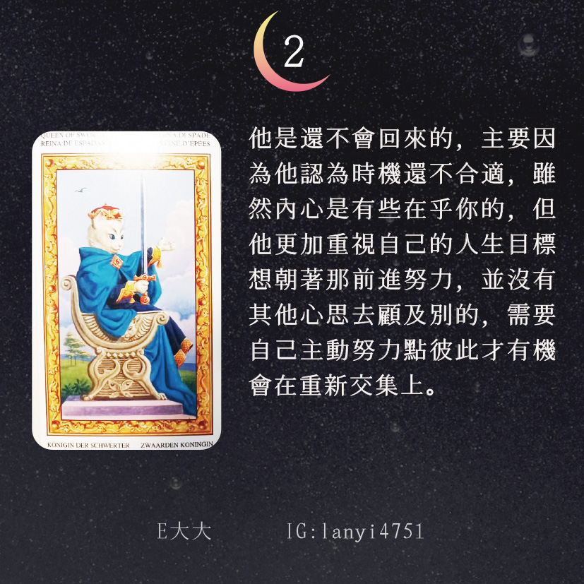 哈囉大家好嗎?我是E大大唷~直言直語的塔羅牌占卜師!偶爾也會分享多年來累積的知識及經驗,讓大家能夠更了解塔羅牌這回事。日後E大會維持每日一更大眾占卜or心理測驗(除非我太累啦😂)歡迎關注追蹤我囉!https://linktr.ee/lanyi47511