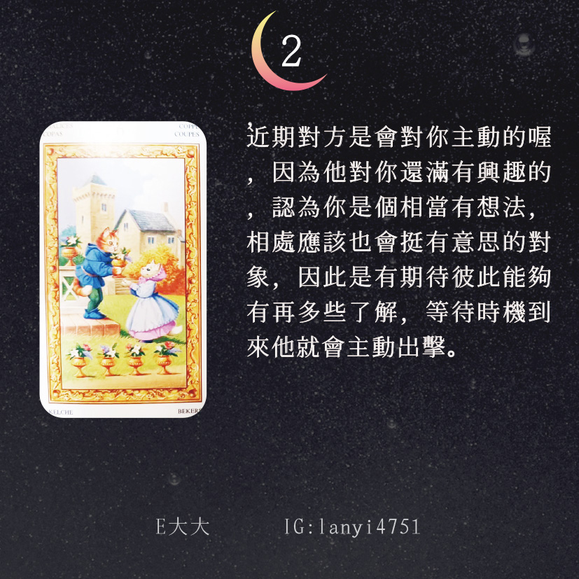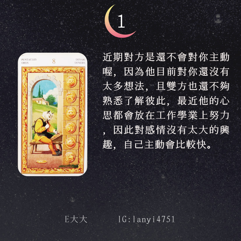 哈囉大家好嗎?我是E大大唷~直言直語的塔羅牌占卜師!偶爾也會分享多年來累積的知識及經驗,讓大家能夠更了解塔羅牌這回事。日後E大會維持每日一更大眾占卜or心理測驗(除非我太累啦😂)歡迎關注追蹤我囉!https://linktr.ee/lanyi47511
