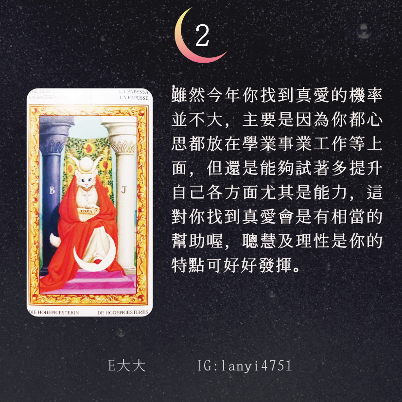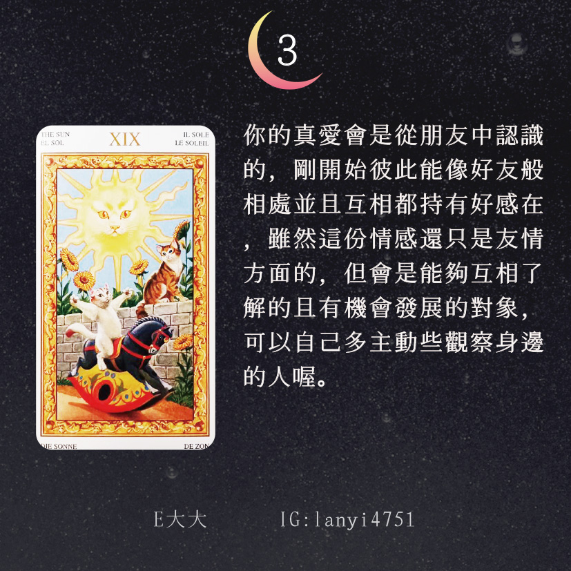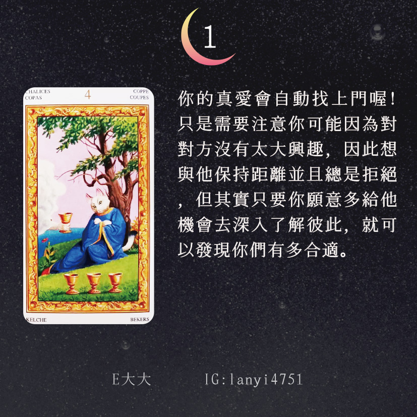 哈囉大家好嗎?我是E大大唷~直言直語的塔羅牌占卜師!偶爾也會分享多年來累積的知識及經驗,讓大家能夠更了解塔羅牌這回事。日後E大會維持每日一更大眾占卜or心理測驗(除非我太累啦😂)歡迎關注追蹤我囉!https://linktr.ee/lanyi47511