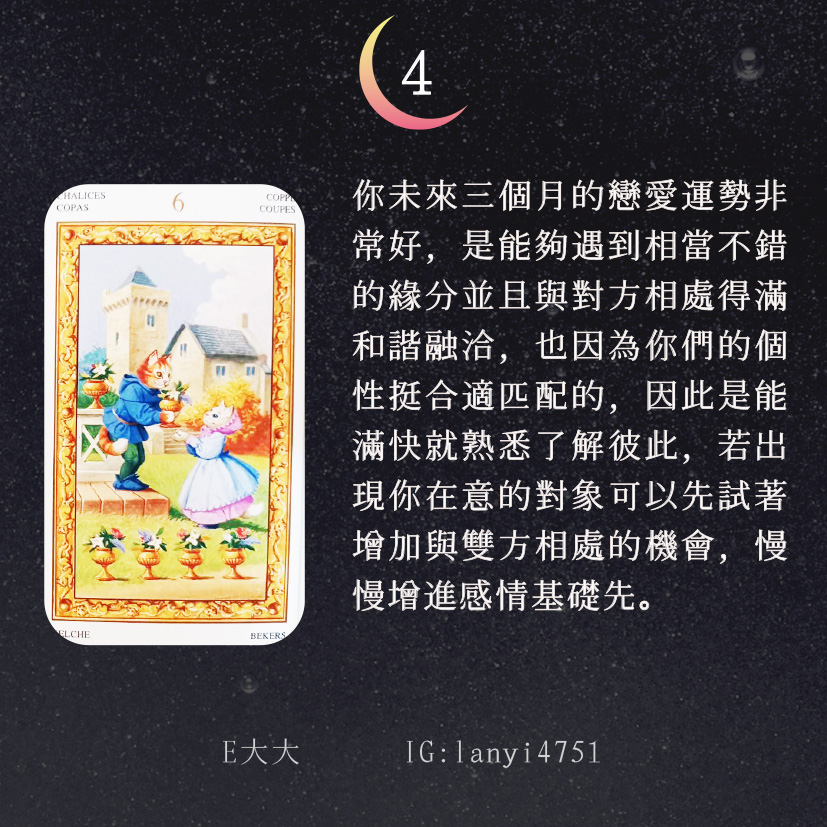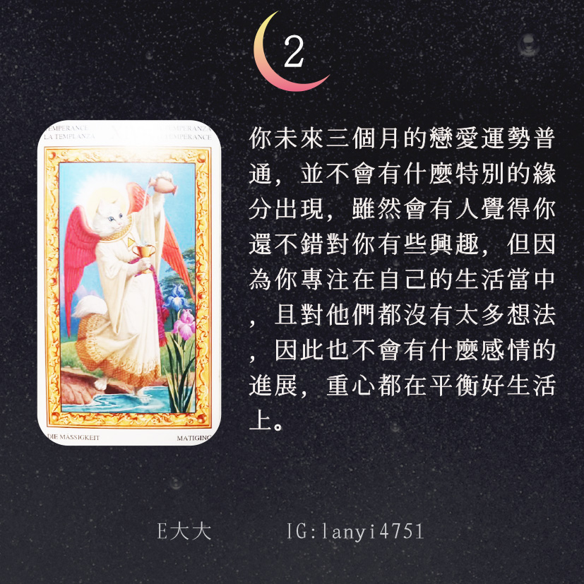 哈囉大家好嗎?我是E大大唷~直言直語的塔羅牌占卜師!偶爾也會分享多年來累積的知識及經驗,讓大家能夠更了解塔羅牌這回事。日後E大會維持每日一更大眾占卜or心理測驗(除非我太累啦😂)歡迎關注追蹤我囉!https://linktr.ee/lanyi4751