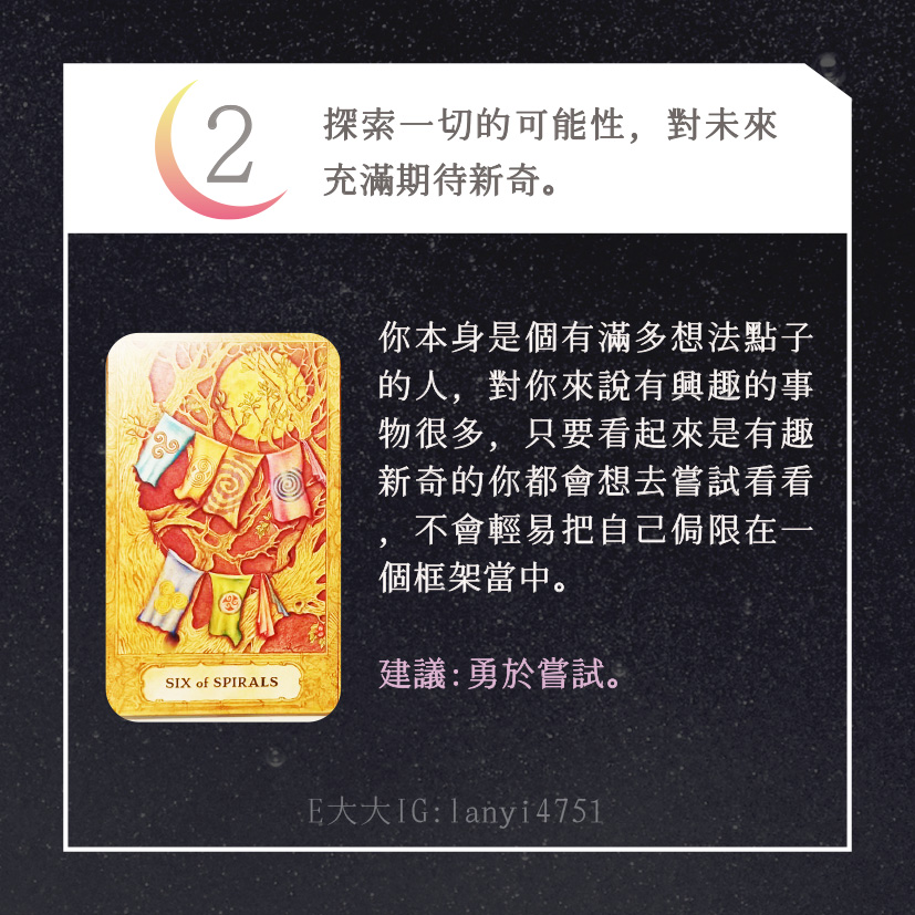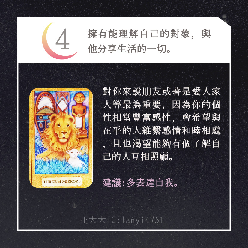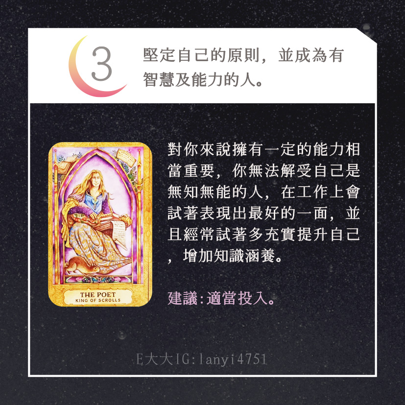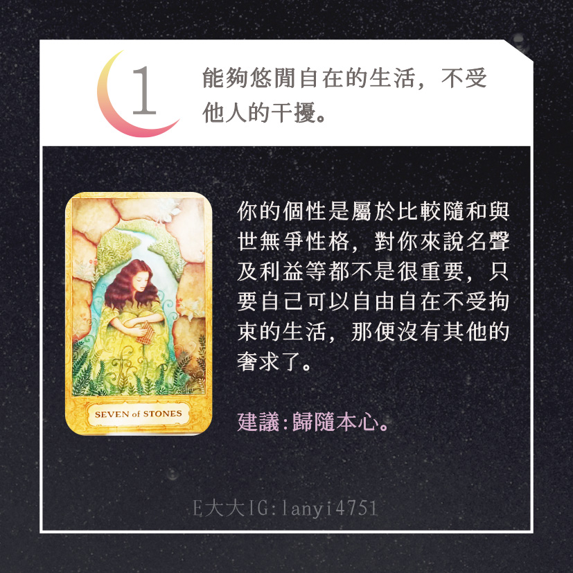 哈囉大家好嗎?我是E大大唷~直言直語的塔羅牌占卜師!偶爾也會分享多年來累積的知識及經驗,讓大家能夠更了解塔羅牌這回事。日後E大會維持每日一更大眾占卜or心理測驗(除非我太累啦😂)歡迎關注追蹤我囉!https://linktr.ee/lanyi4751