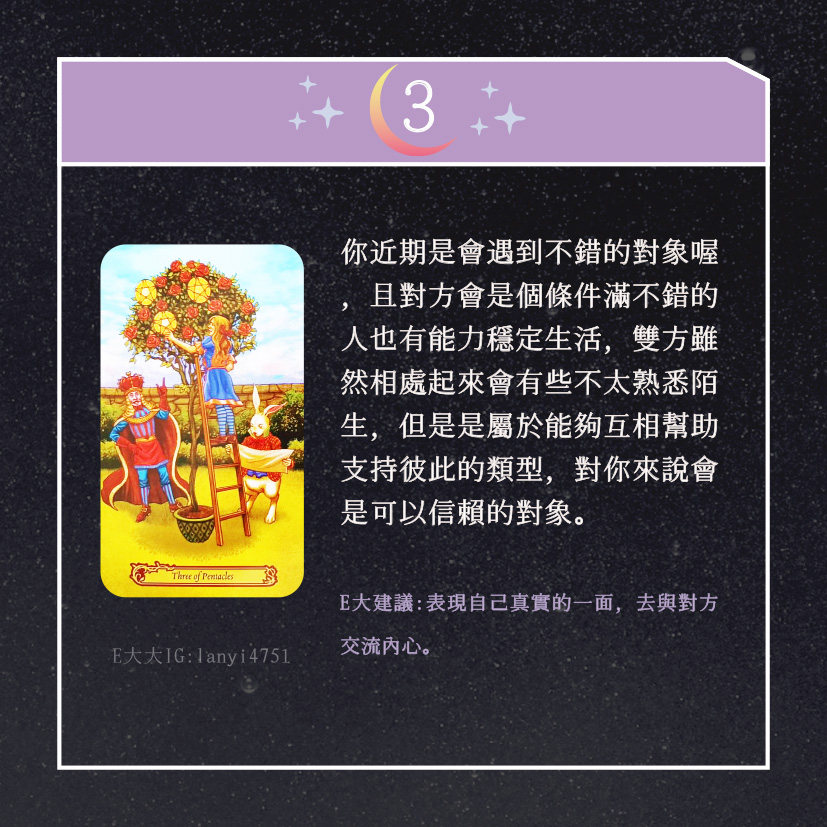 嗨~我是E大,歡迎你來到我的塔羅世界,創立這個平台主要是為了讓更多人對塔羅牌產生興趣,並且能透過牌卡找到自己人生方向。歡迎關注追蹤我囉!https://linktr.ee/lanyi4751