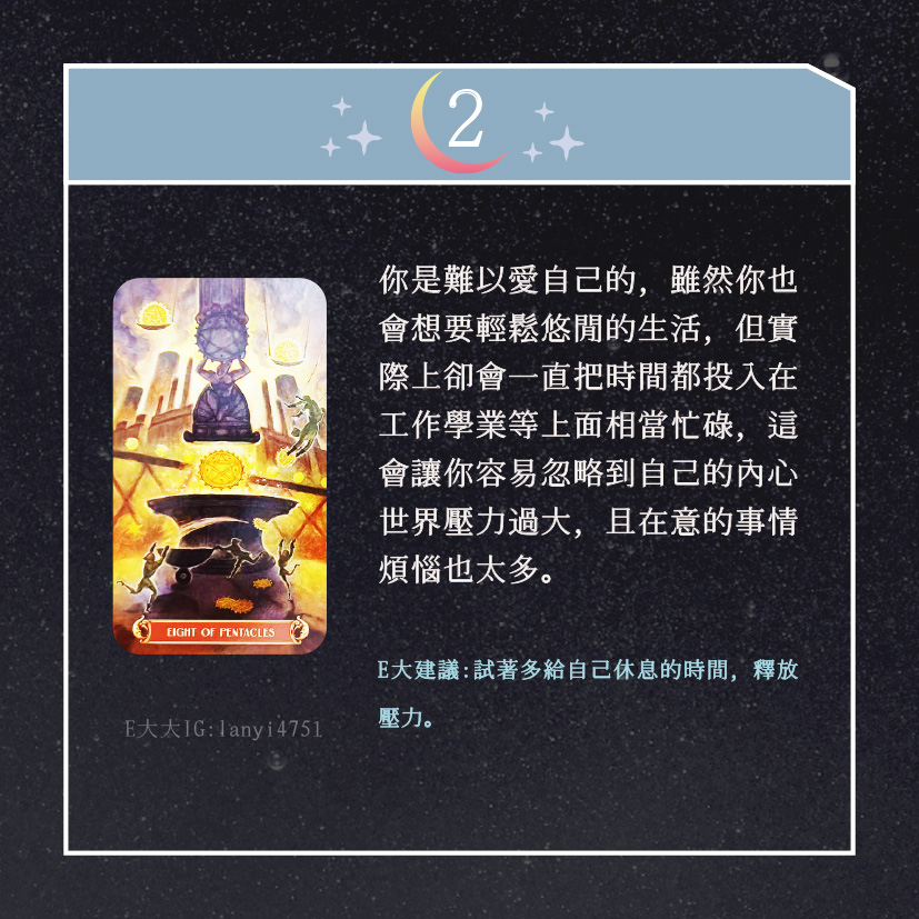 嗨~我是E大,歡迎你來到我的塔羅世界,創立這個平台主要是為了讓更多人對塔羅牌產生興趣,並且能透過牌卡找到自己人生方向。歡迎關注追蹤我囉!https://linktr.ee/lanyi4751
