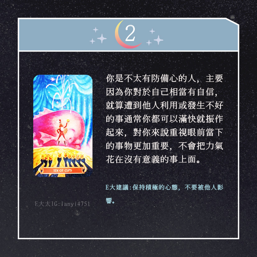嗨~我是E大,歡迎你來到我的塔羅世界,創立這個平台主要是為了讓更多人對塔羅牌產生興趣,並且能透過牌卡找到自己人生方向。歡迎關注追蹤我囉!https://linktr.ee/lanyi4751