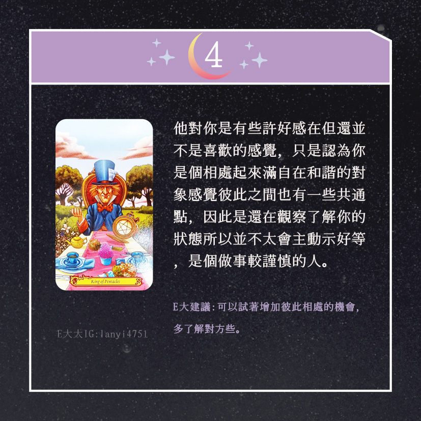 嗨~我是E大,歡迎你來到我的塔羅世界,創立這個平台主要是為了讓更多人對塔羅牌產生興趣,並且能透過牌卡找到自己人生方向。歡迎關注追蹤我囉!https://linktr.ee/lanyi4751