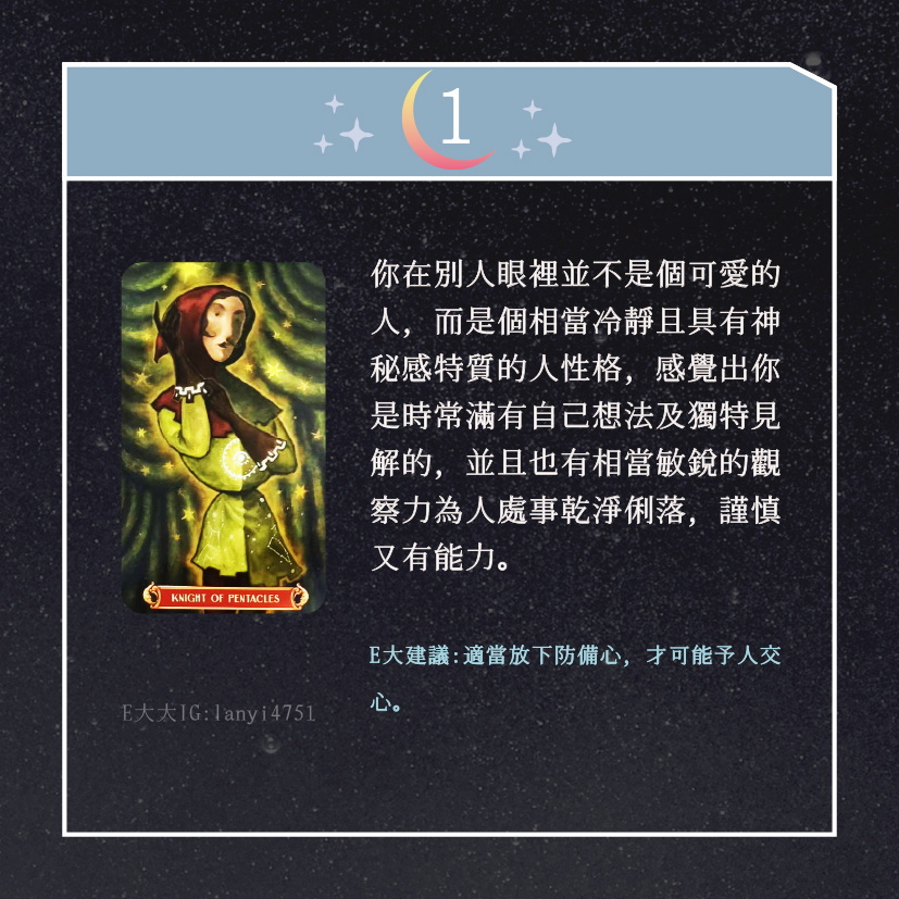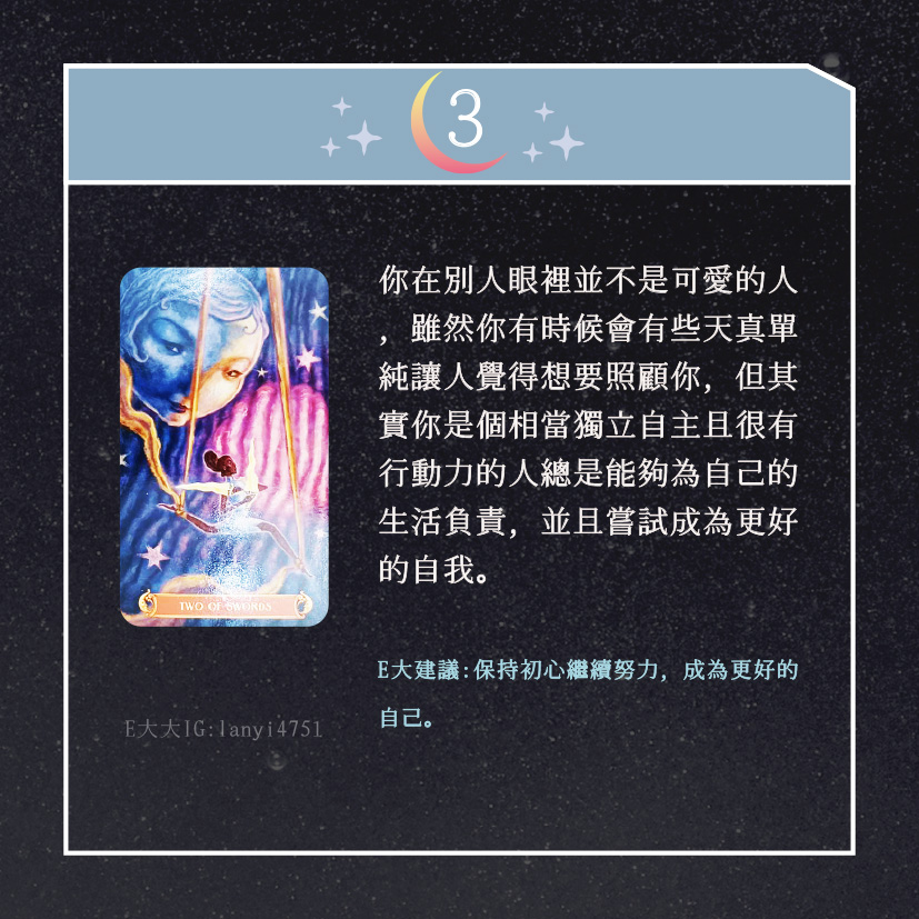嗨~我是E大,歡迎你來到我的塔羅世界,創立這個平台主要是為了讓更多人對塔羅牌產生興趣,並且能透過牌卡找到自己人生方向。歡迎關注追蹤我囉!https://linktr.ee/lanyi4751