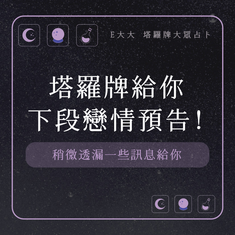 嗨~我是E大,歡迎你來到我的塔羅世界,每天會跟大家分享有趣的塔牌測驗,及塔羅知識喔!