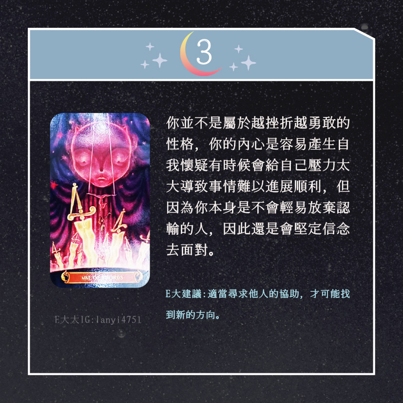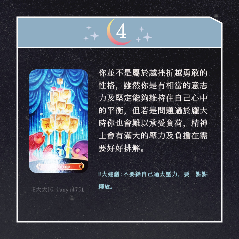 嗨~我是E大,歡迎你來到我的塔羅世界,創立這個平台主要是為了讓更多人對塔羅牌產生興趣,並且能透過牌卡找到自己人生方向。歡迎關注追蹤我囉!https://linktr.ee/lanyi4751