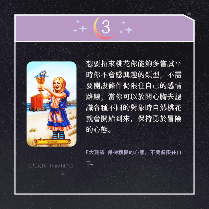 嗨~我是E大,歡迎你來到我的塔羅世界,創立這個平台主要是為了讓更多人對塔羅牌產生興趣,並且能透過牌卡找到自己人生方向。歡迎關注追蹤我囉!https://linktr.ee/lanyi4751
