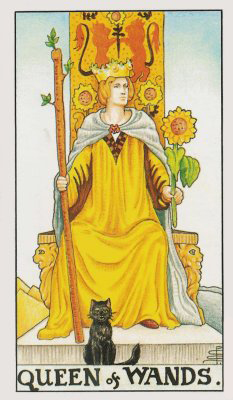 有一個女人坐在寶座上,寶座上刻有兩隻對反的獅子,意味著力量權威。向日葵則代表幸福滿足及孕育,充滿正向意念。她頭上戴著一個皇冠,象徵她是位皇后。手上拿著權杖,擁有至高的權利,另一手拿著向日葵。皇后身穿著黃色衣袍,象徵希望,白色披風意味著純潔。前方還有隻黑貓,意味著潛在的力量不可低估。後方是山脈及河川,她擁有許多的資源。