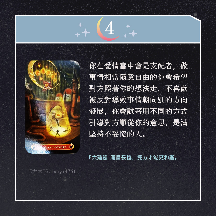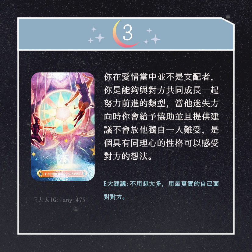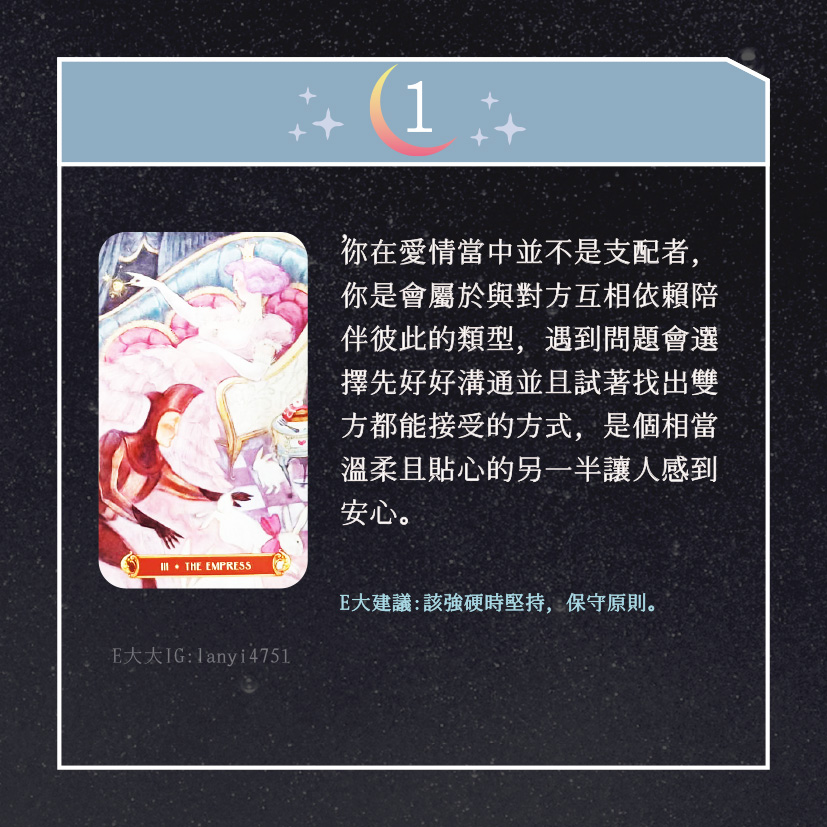 嗨~我是E大,歡迎你來到我的塔羅世界,創立這個平台主要是為了讓更多人對塔羅牌產生興趣,並且能透過牌卡找到自己人生方向。歡迎關注追蹤我囉!https://linktr.ee/lanyi4751