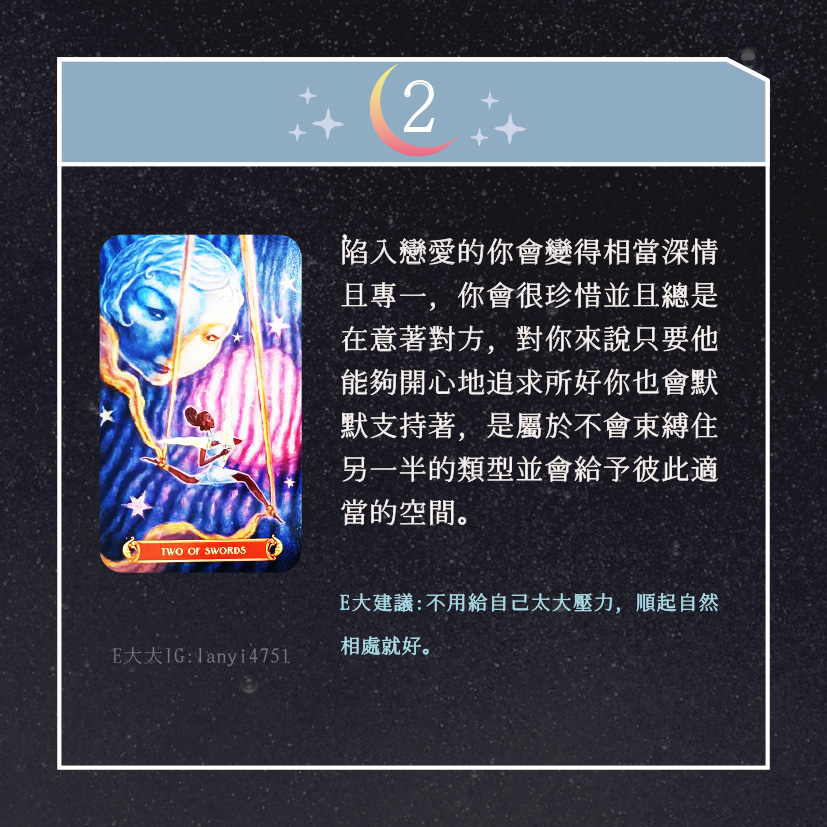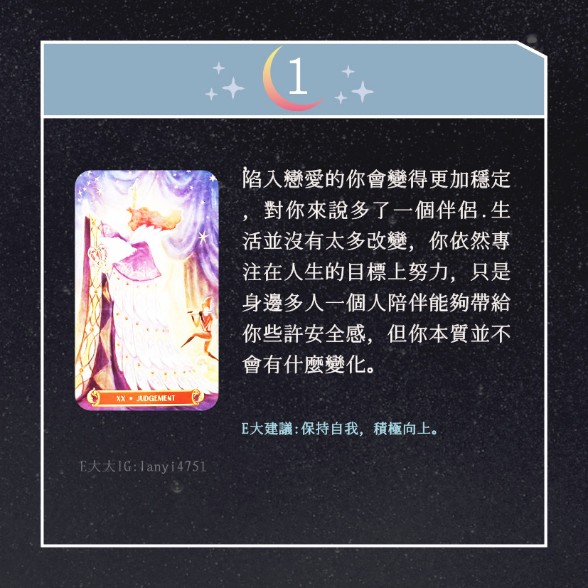 嗨~我是E大,歡迎你來到我的塔羅世界,創立這個平台主要是為了讓更多人對塔羅牌產生興趣,並且能透過牌卡找到自己人生方向。歡迎關注追蹤我囉!https://linktr.ee/lanyi4751