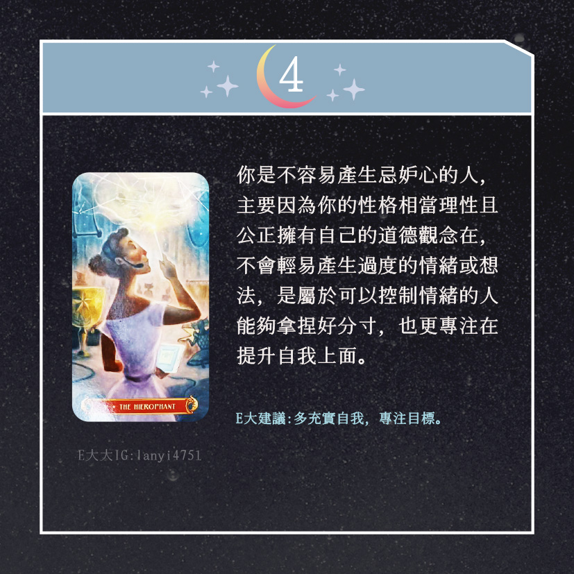 嗨~我是E大,歡迎你來到我的塔羅世界,創立這個平台主要是為了讓更多人對塔羅牌產生興趣,並且能透過牌卡找到自己人生方向。歡迎關注追蹤我囉!https://linktr.ee/lanyi4751