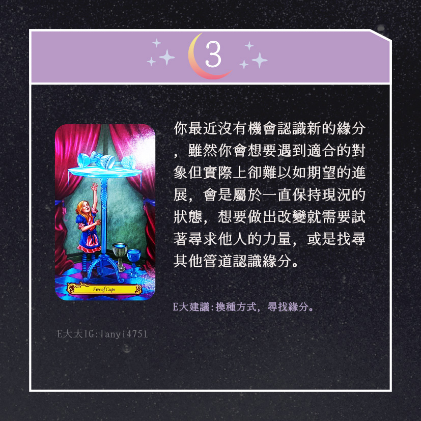 嗨~我是E大,歡迎你來到我的塔羅世界,創立這個平台主要是為了讓更多人對塔羅牌產生興趣,並且能透過牌卡找到自己人生方向。歡迎關注追蹤我囉!https://linktr.ee/lanyi4751