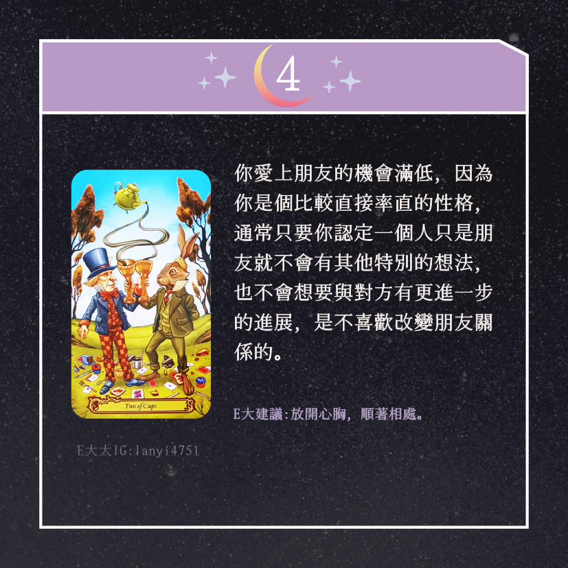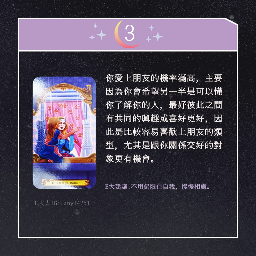 嗨~我是E大,歡迎你來到我的塔羅世界,創立這個平台主要是為了讓更多人對塔羅牌產生興趣,並且能透過牌卡找到自己人生方向。歡迎關注追蹤我囉!https://linktr.ee/lanyi4751
