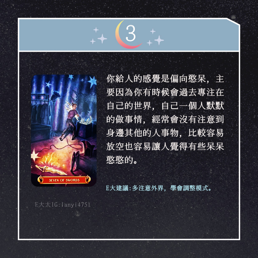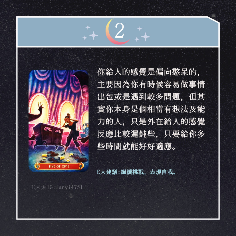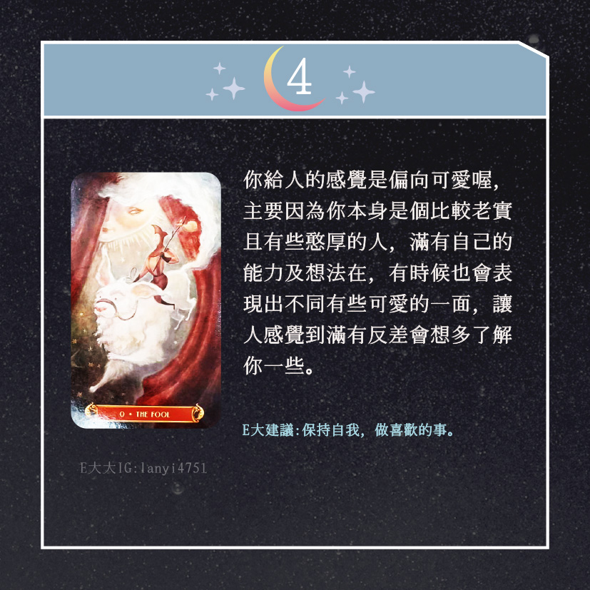 嗨~我是E大,歡迎你來到我的塔羅世界,創立這個平台主要是為了讓更多人對塔羅牌產生興趣,並且能透過牌卡找到自己人生方向。歡迎關注追蹤我囉!https://linktr.ee/lanyi4751