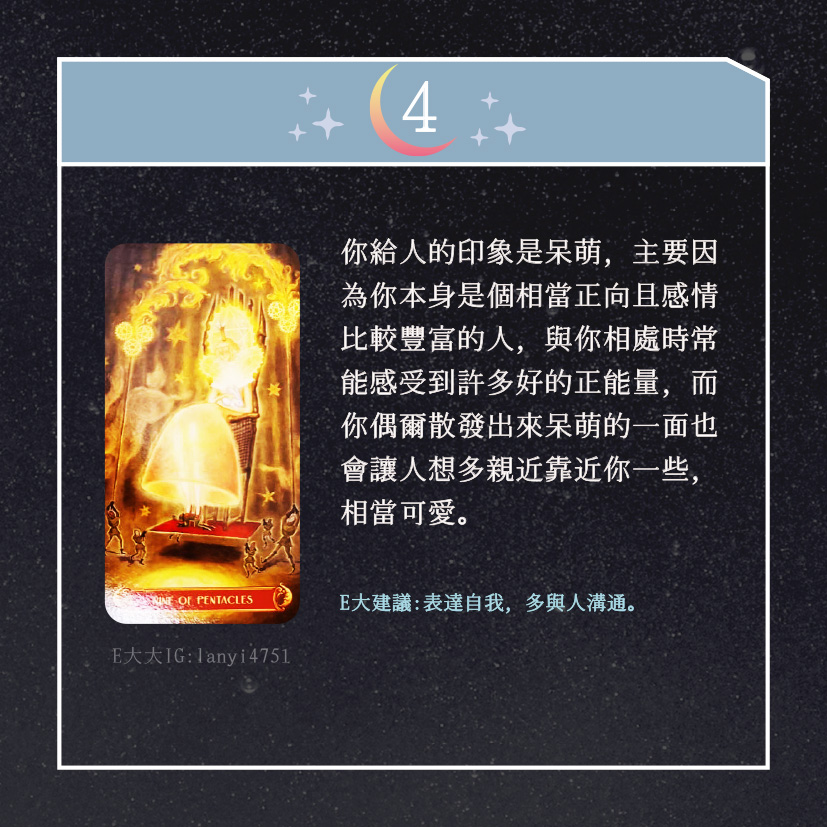 嗨~我是E大,歡迎你來到我的塔羅世界,創立這個平台主要是為了讓更多人對塔羅牌產生興趣,並且能透過牌卡找到自己人生方向。歡迎關注追蹤我囉!https://linktr.ee/lanyi4751