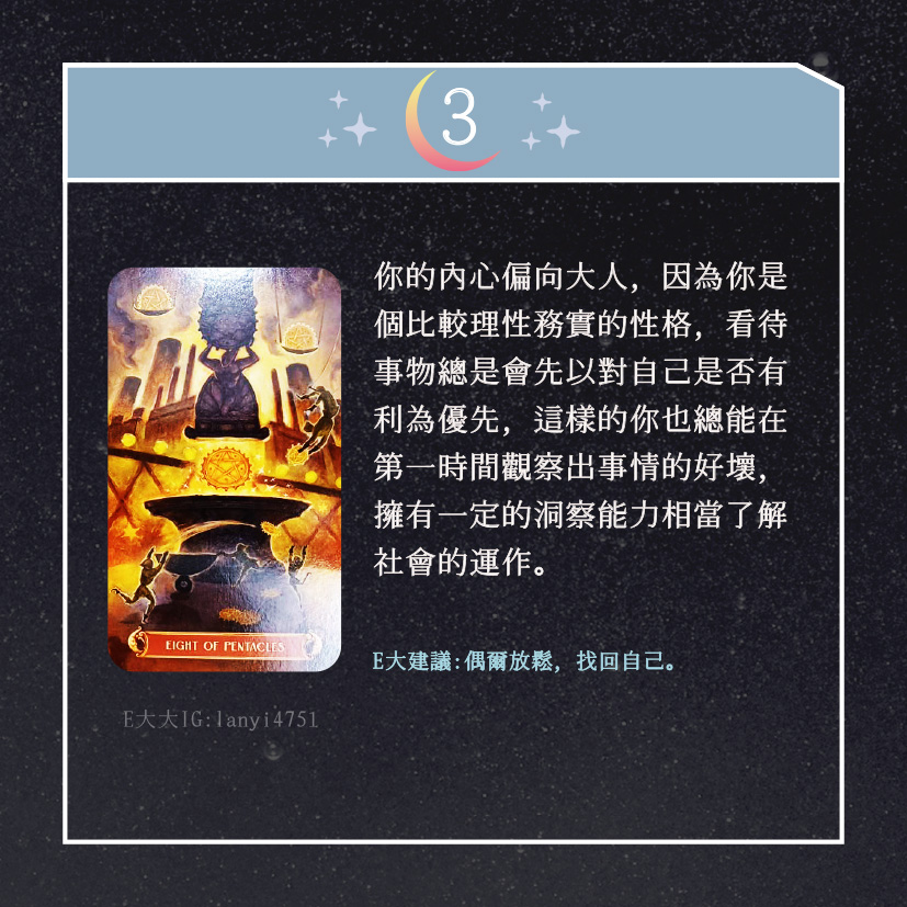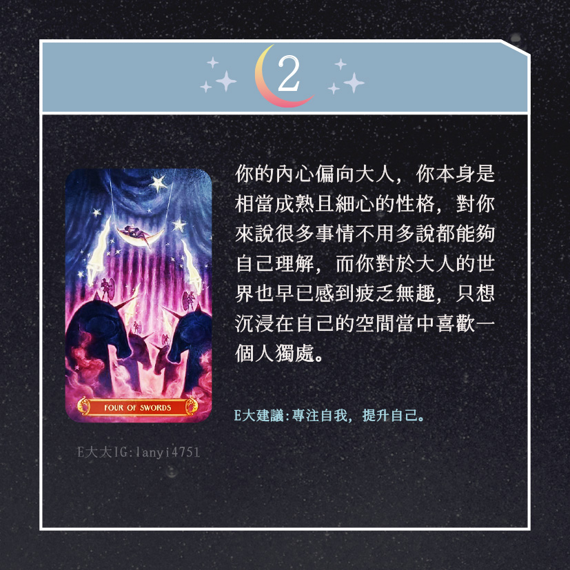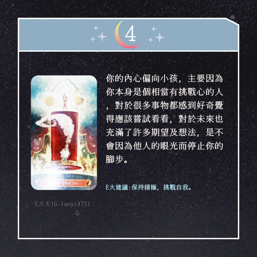 嗨~我是E大,歡迎你來到我的塔羅世界,創立這個平台主要是為了讓更多人對塔羅牌產生興趣,並且能透過牌卡找到自己人生方向。歡迎關注追蹤我囉!https://linktr.ee/lanyi4751