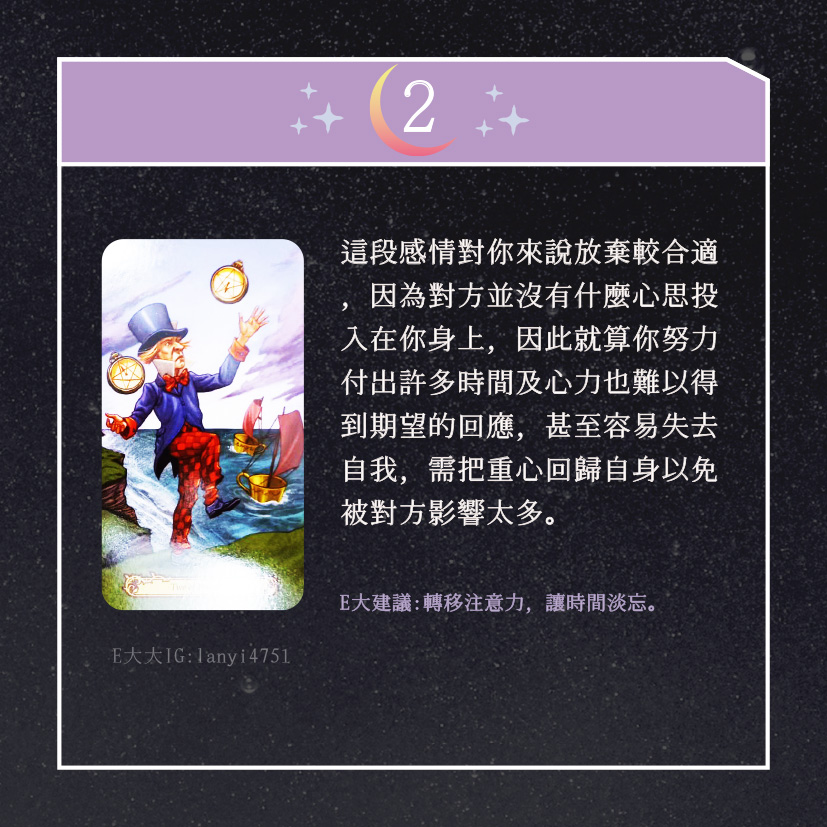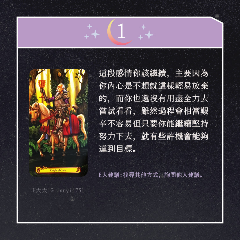 嗨~我是E大,歡迎你來到我的塔羅世界,創立這個平台主要是為了讓更多人對塔羅牌產生興趣,並且能透過牌卡找到自己人生方向。歡迎關注追蹤我囉!https://linktr.ee/lanyi4751