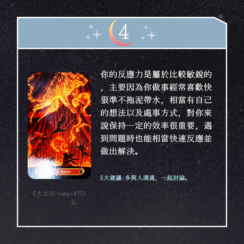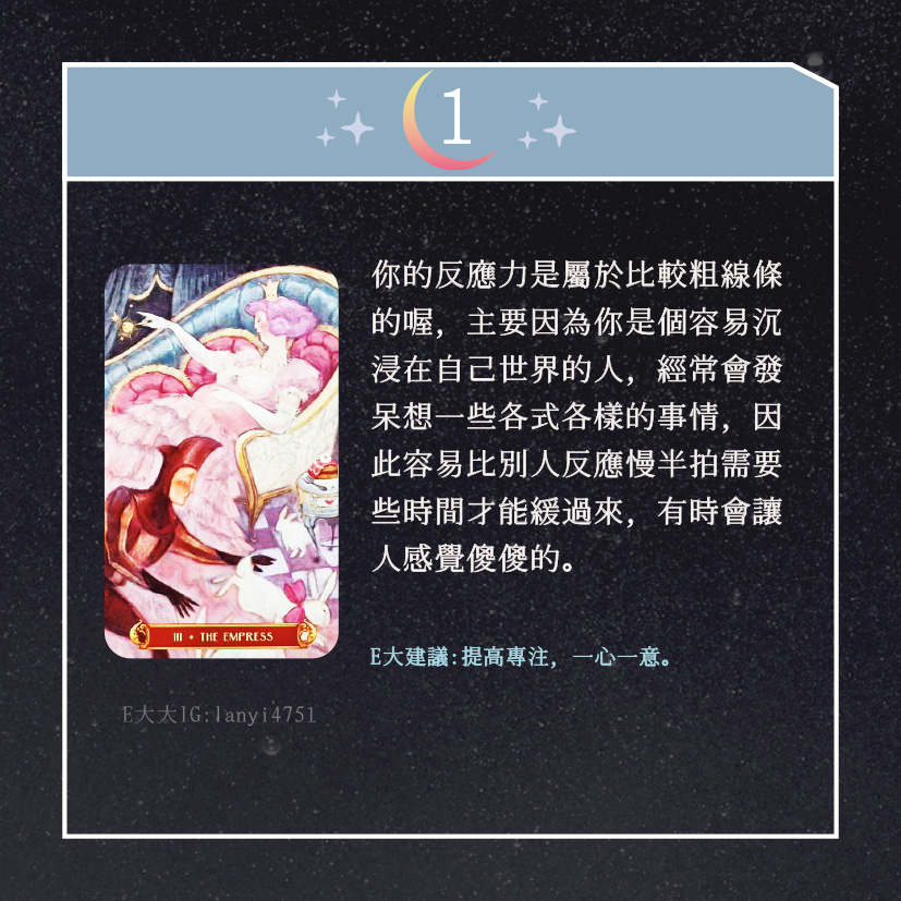 嗨~我是E大,歡迎你來到我的塔羅世界,創立這個平台主要是為了讓更多人對塔羅牌產生興趣,並且能透過牌卡找到自己人生方向。歡迎關注追蹤我囉!https://linktr.ee/lanyi4751