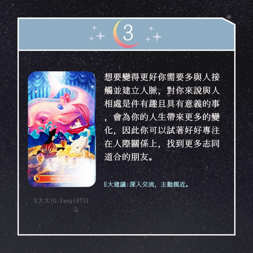 嗨~我是E大,歡迎你來到我的塔羅世界,創立這個平台主要是為了讓更多人對塔羅牌產生興趣,並且能透過牌卡找到自己人生方向。歡迎關注追蹤我囉!https://linktr.ee/lanyi4751