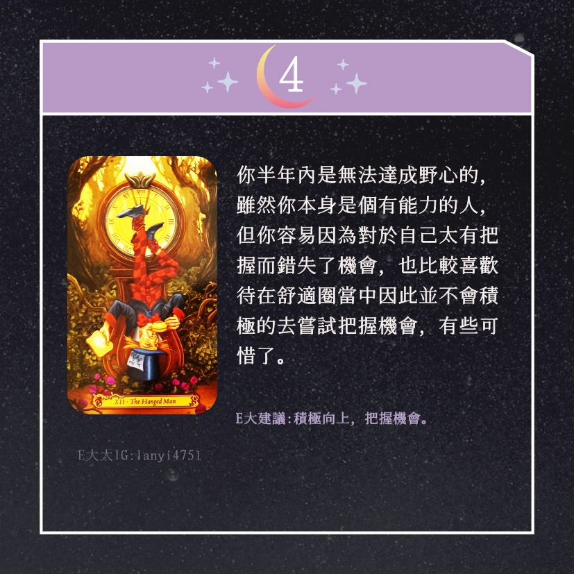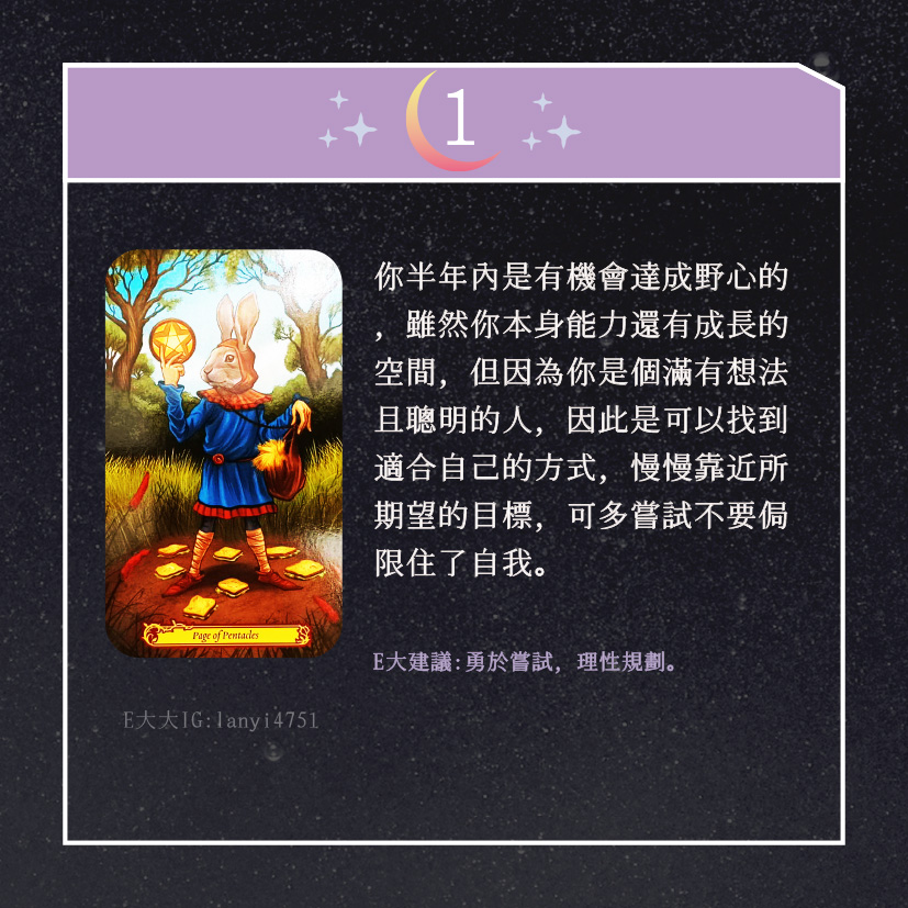 嗨~我是E大,歡迎你來到我的塔羅世界,創立這個平台主要是為了讓更多人對塔羅牌產生興趣,並且能透過牌卡找到自己人生方向。歡迎關注追蹤我囉!https://linktr.ee/lanyi4751