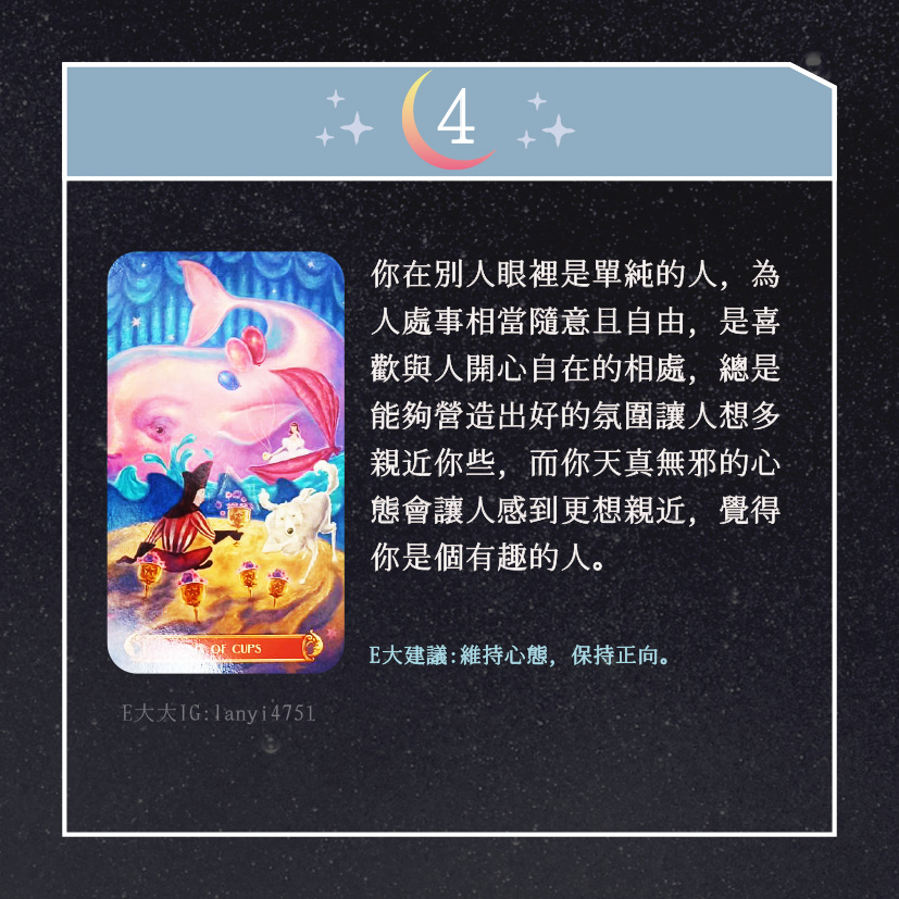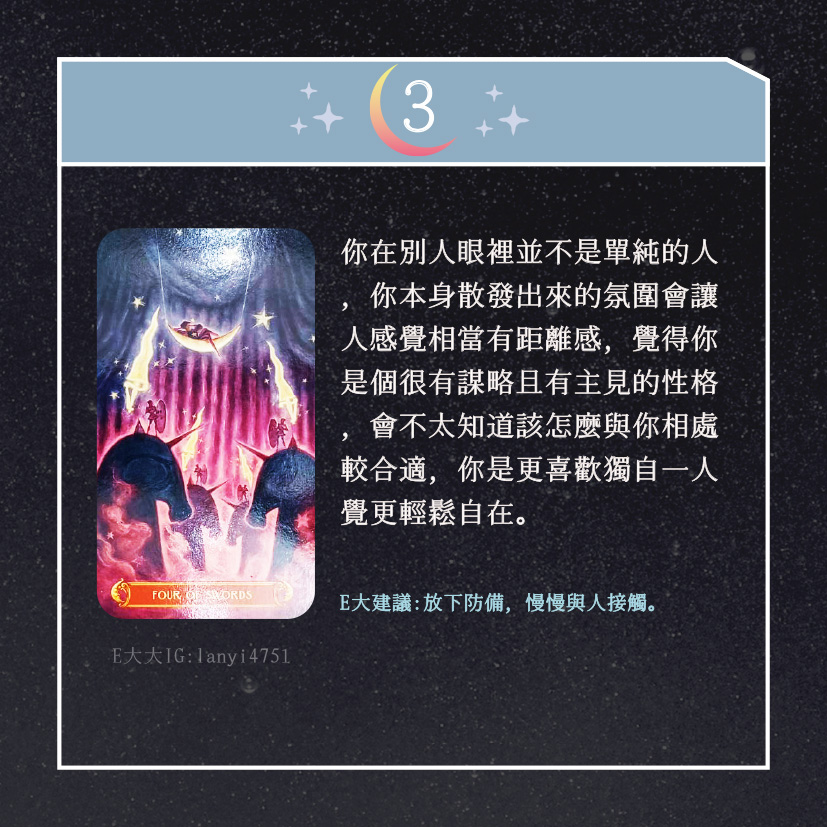 嗨~我是E大,歡迎你來到我的塔羅世界,創立這個平台主要是為了讓更多人對塔羅牌產生興趣,並且能透過牌卡找到自己人生方向。歡迎關注追蹤我囉!https://linktr.ee/lanyi4751