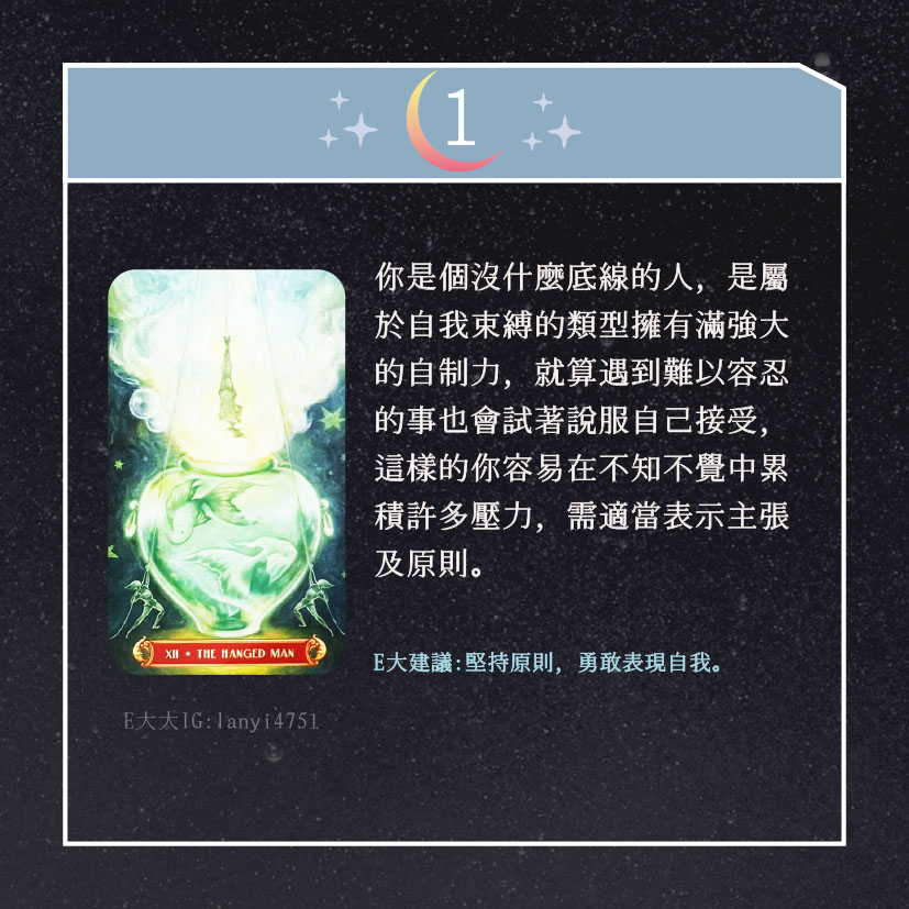嗨~我是E大,歡迎你來到我的塔羅世界,創立這個平台主要是為了讓更多人對塔羅牌產生興趣,並且能透過牌卡找到自己人生方向。歡迎關注追蹤我囉!https://linktr.ee/lanyi4751