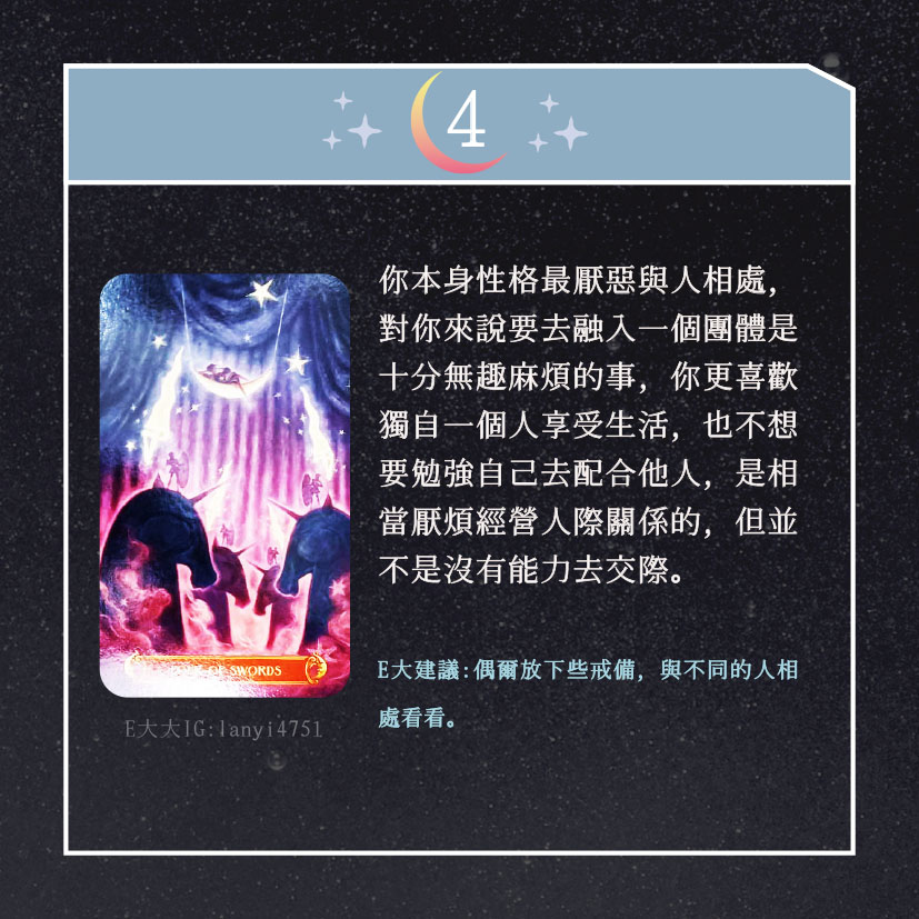 嗨~我是E大,歡迎你來到我的塔羅世界,創立這個平台主要是為了讓更多人對塔羅牌產生興趣,並且能透過牌卡找到自己人生方向。歡迎關注追蹤我囉!https://linktr.ee/lanyi4751