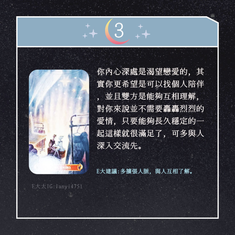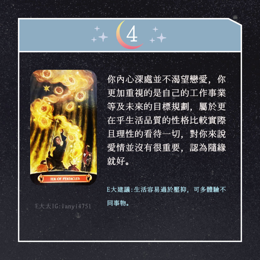 嗨~我是E大,歡迎你來到我的塔羅世界,創立這個平台主要是為了讓更多人對塔羅牌產生興趣,並且能透過牌卡找到自己人生方向。歡迎關注追蹤我囉!https://linktr.ee/lanyi4751