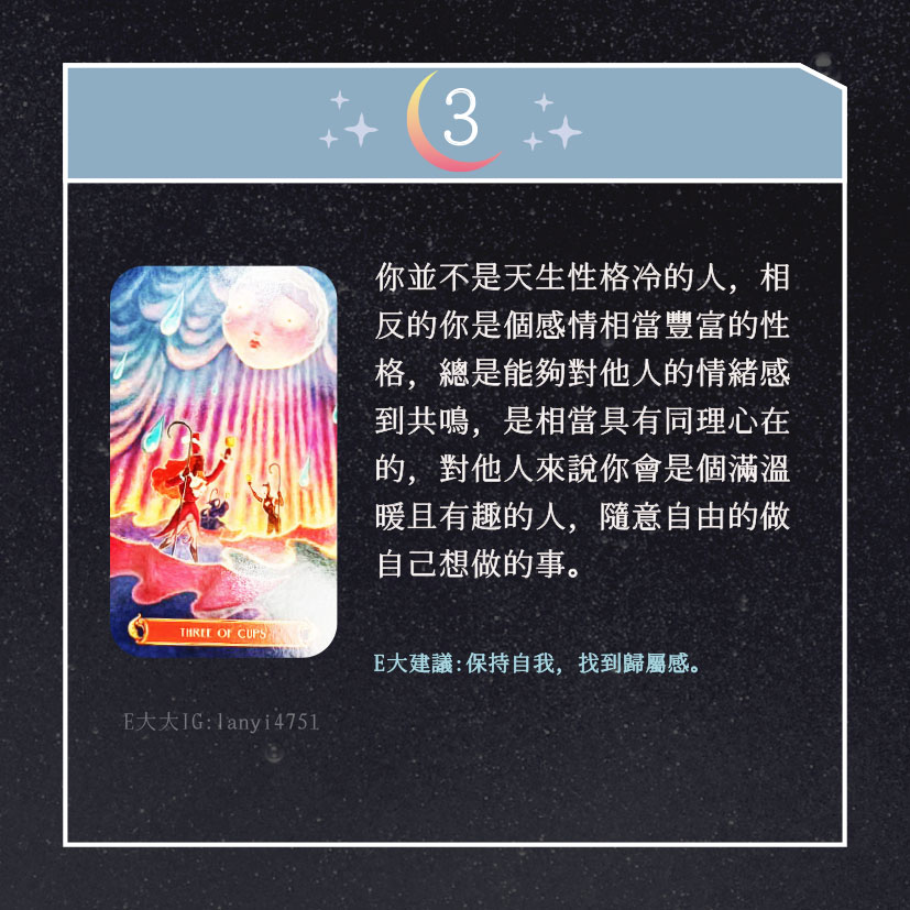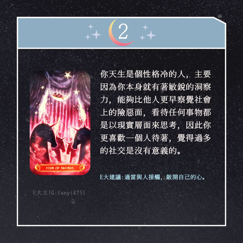 嗨~我是E大,歡迎你來到我的塔羅世界,創立這個平台主要是為了讓更多人對塔羅牌產生興趣,並且能透過牌卡找到自己人生方向。歡迎關注追蹤我囉!https://linktr.ee/lanyi4751