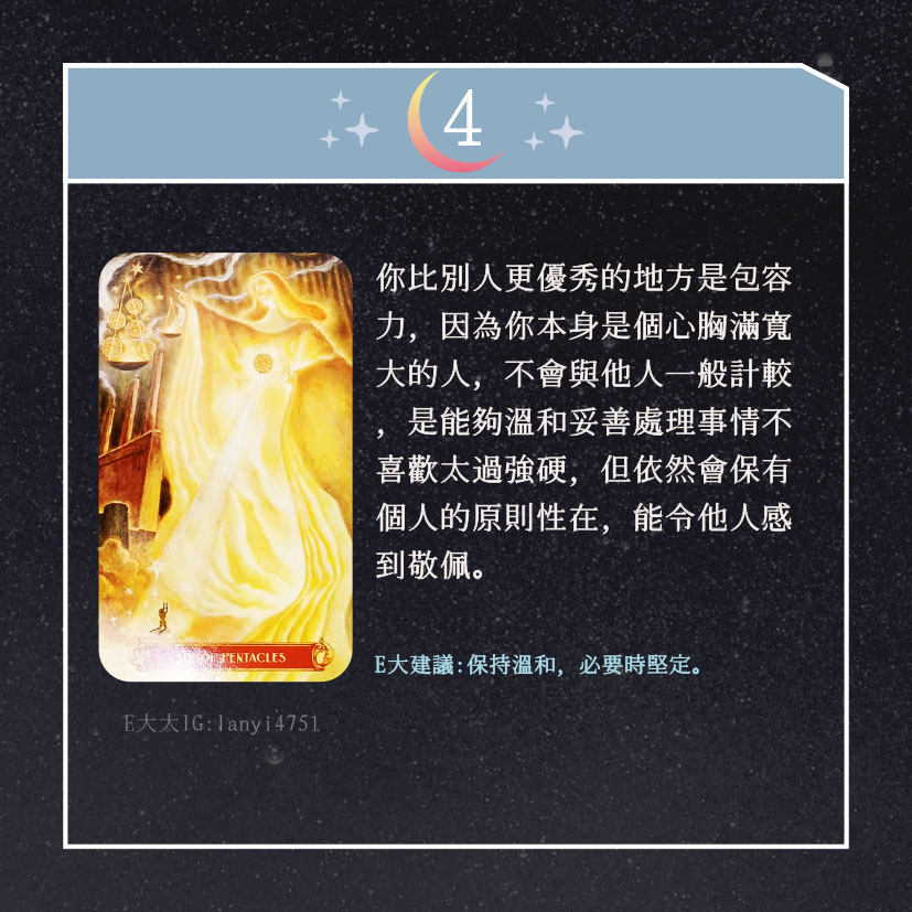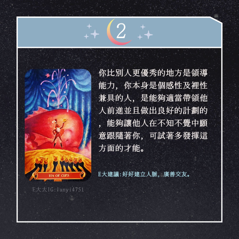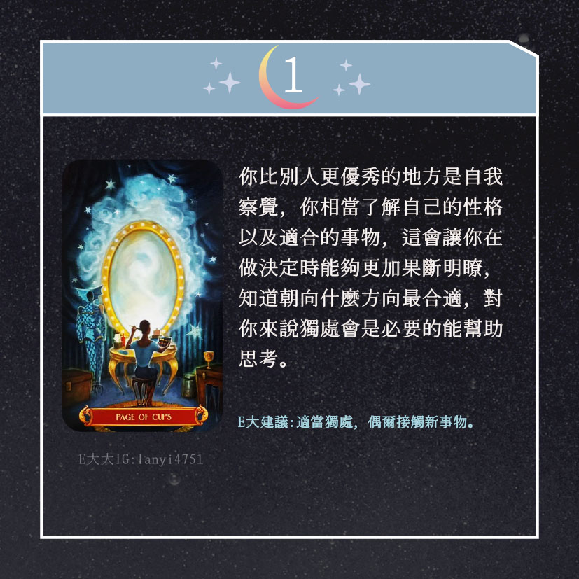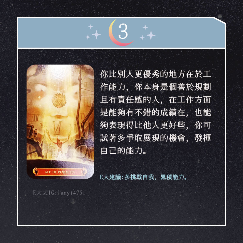 嗨~我是E大,歡迎你來到我的塔羅世界,創立這個平台主要是為了讓更多人對塔羅牌產生興趣,並且能透過牌卡找到自己人生方向。歡迎關注追蹤我囉!https://linktr.ee/lanyi4751