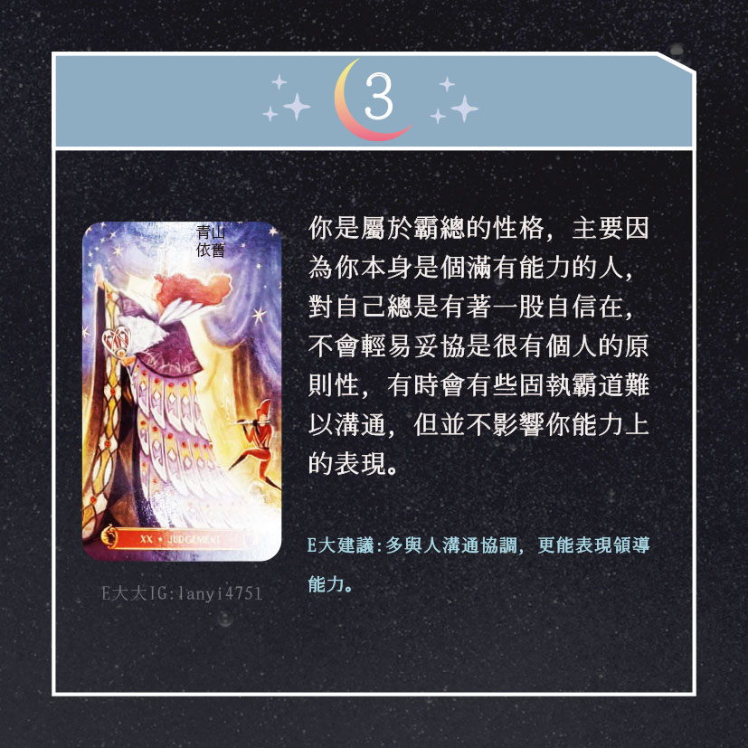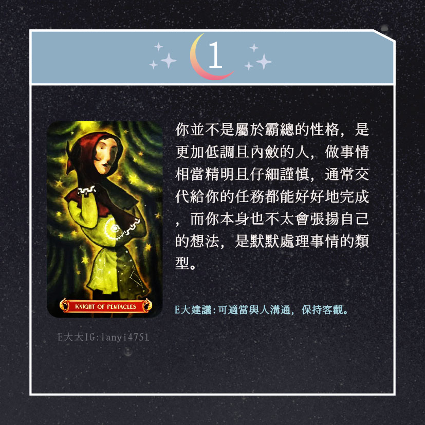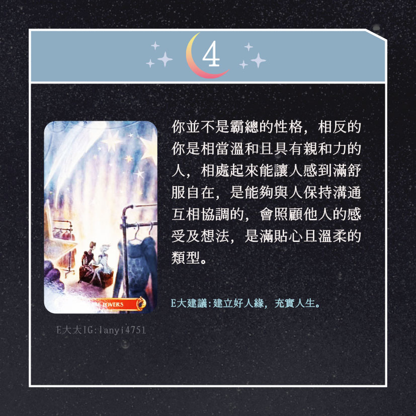 嗨~我是E大,歡迎你來到我的塔羅世界,創立這個平台主要是為了讓更多人對塔羅牌產生興趣,並且能透過牌卡找到自己人生方向。歡迎關注追蹤我囉!https://linktr.ee/lanyi4751