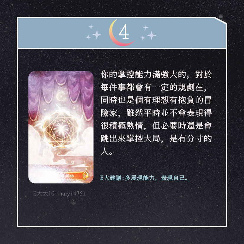 嗨~我是E大,歡迎你來到我的塔羅世界,創立這個平台主要是為了讓更多人對塔羅牌產生興趣,並且能透過牌卡找到自己人生方向。歡迎關注追蹤我囉!https://linktr.ee/lanyi4751