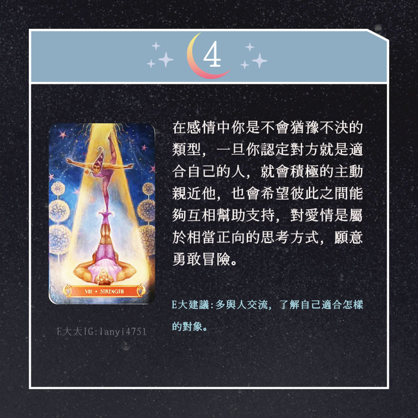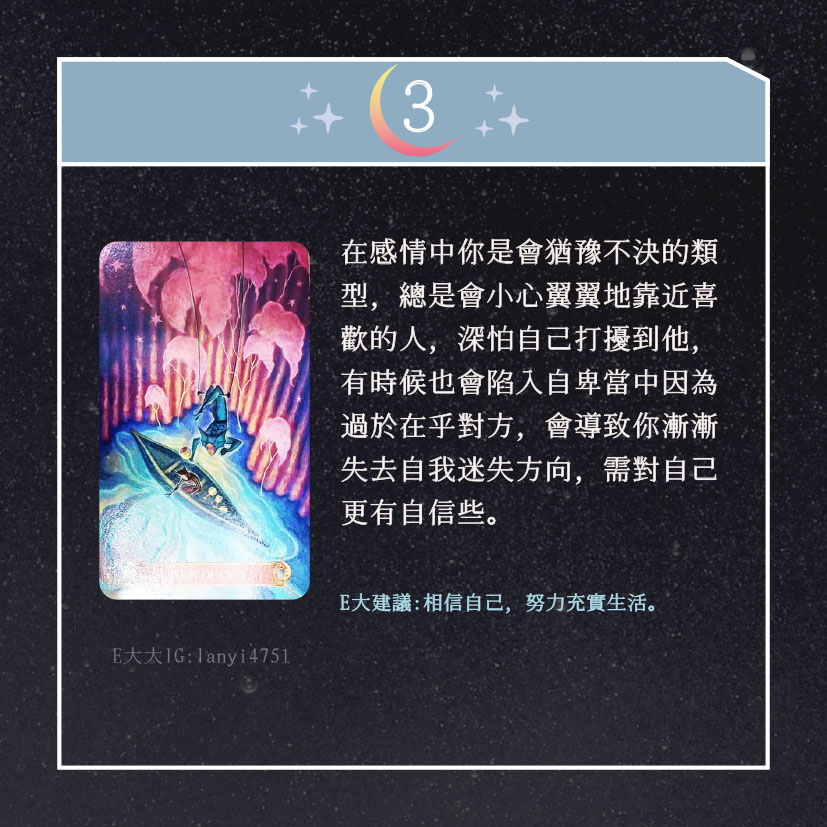 嗨~我是E大,歡迎你來到我的塔羅世界,創立這個平台主要是為了讓更多人對塔羅牌產生興趣,並且能透過牌卡找到自己人生方向。歡迎關注追蹤我囉!https://linktr.ee/lanyi4751