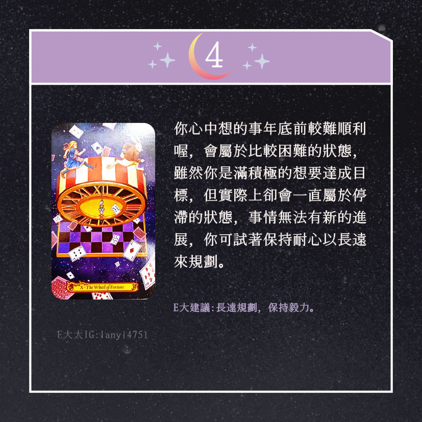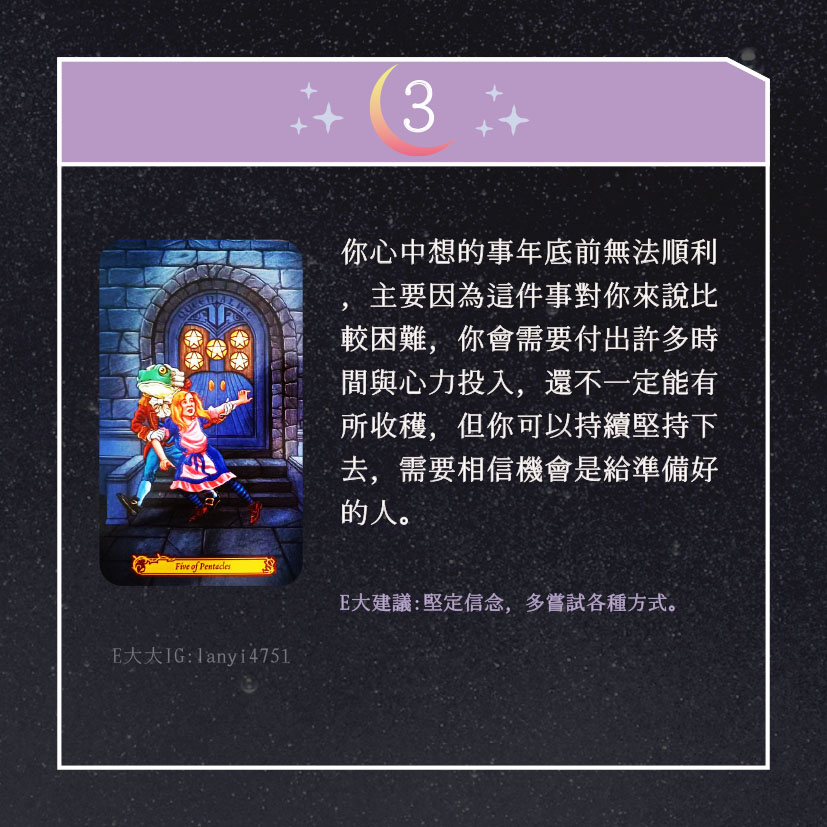 嗨~我是E大,歡迎你來到我的塔羅世界,每天會跟大家分享有趣的塔牌測驗,及塔羅知識喔!