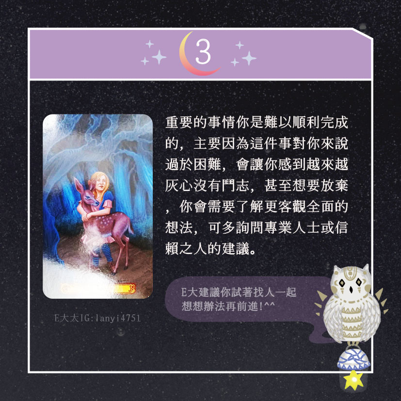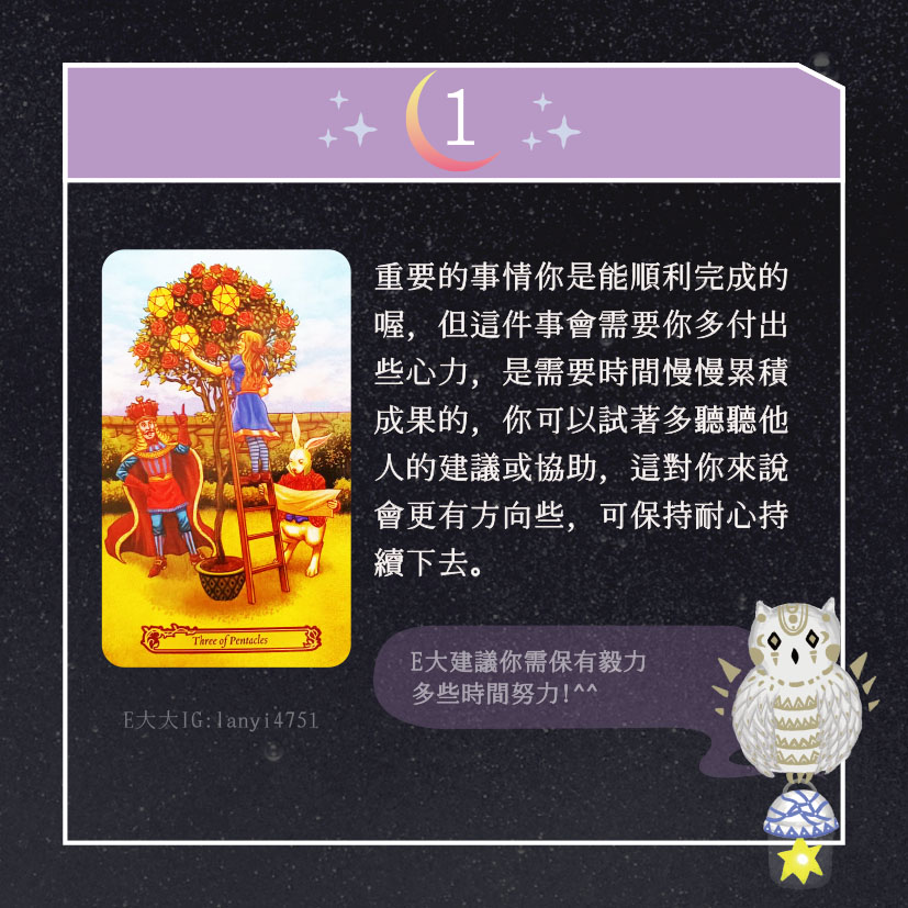 嗨~我是E大,歡迎你來到我的塔羅世界,每天會跟大家分享有趣的塔牌測驗,及塔羅知識喔!