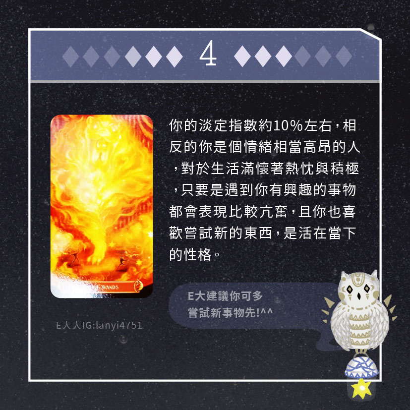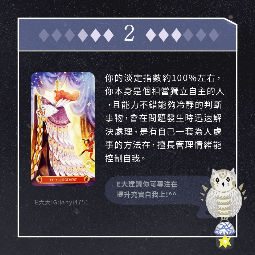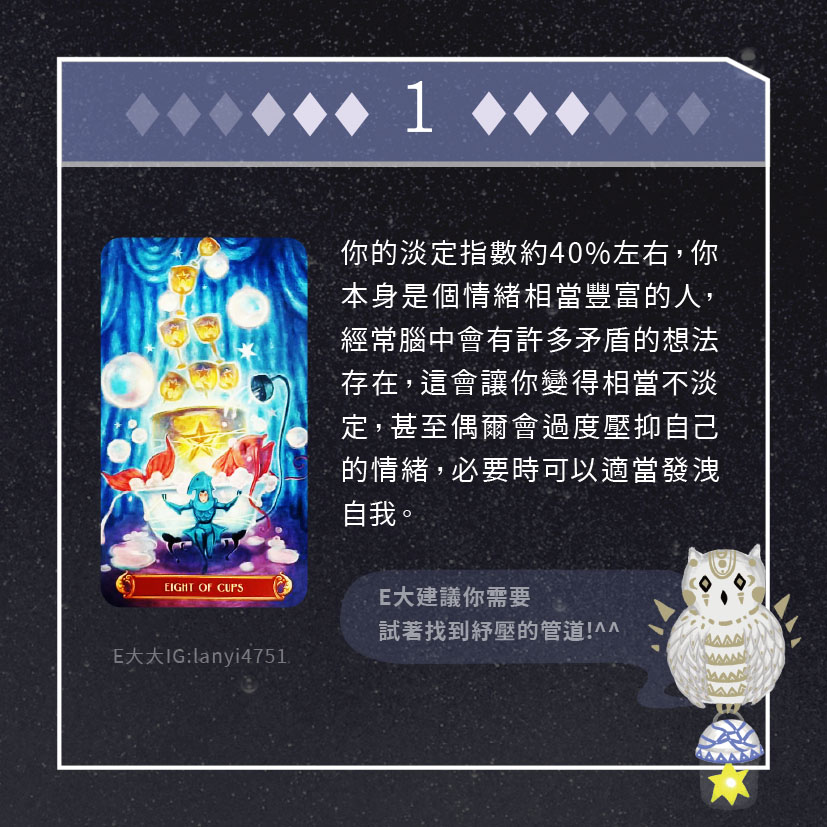 嗨~我是E大,歡迎你來到我的塔羅世界,每天會跟大家分享有趣的塔牌測驗,及塔羅知識喔!