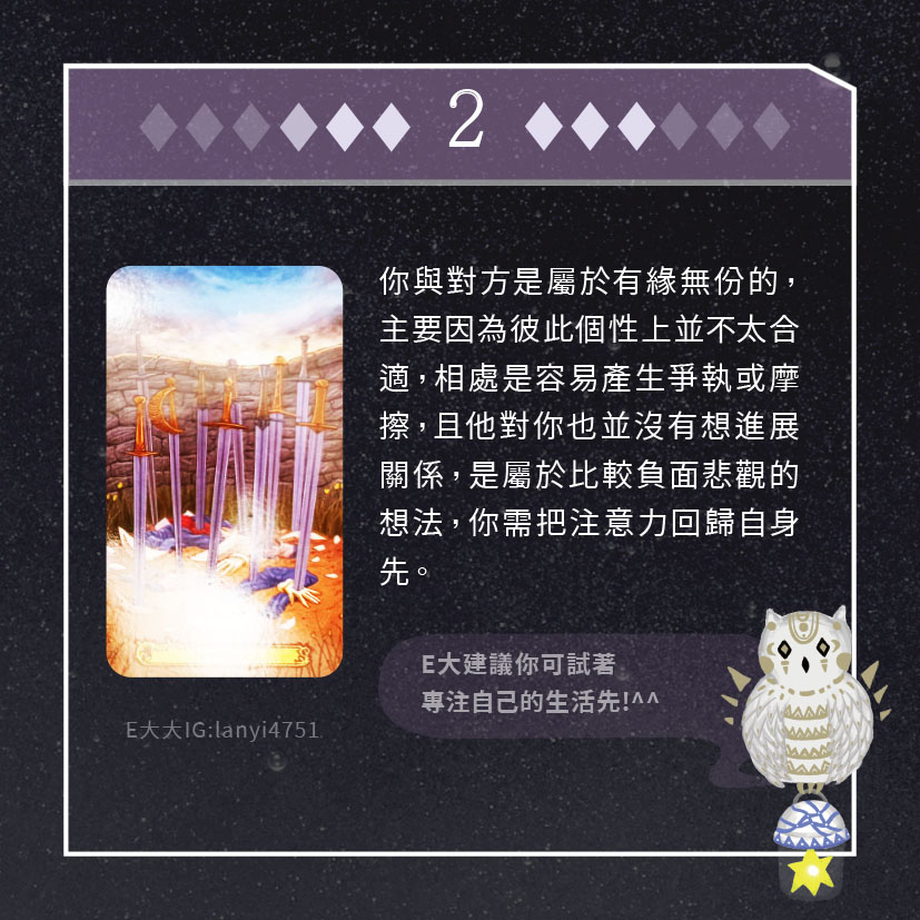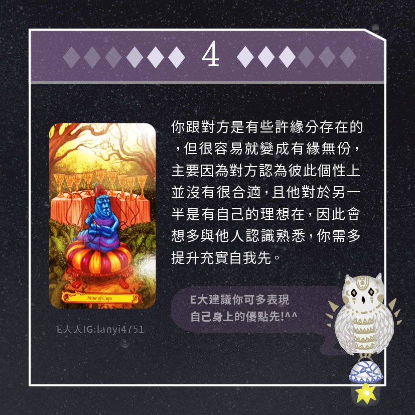 嗨~我是E大,歡迎你來到我的塔羅世界,每天會跟大家分享有趣的塔牌測驗,及塔羅知識喔!