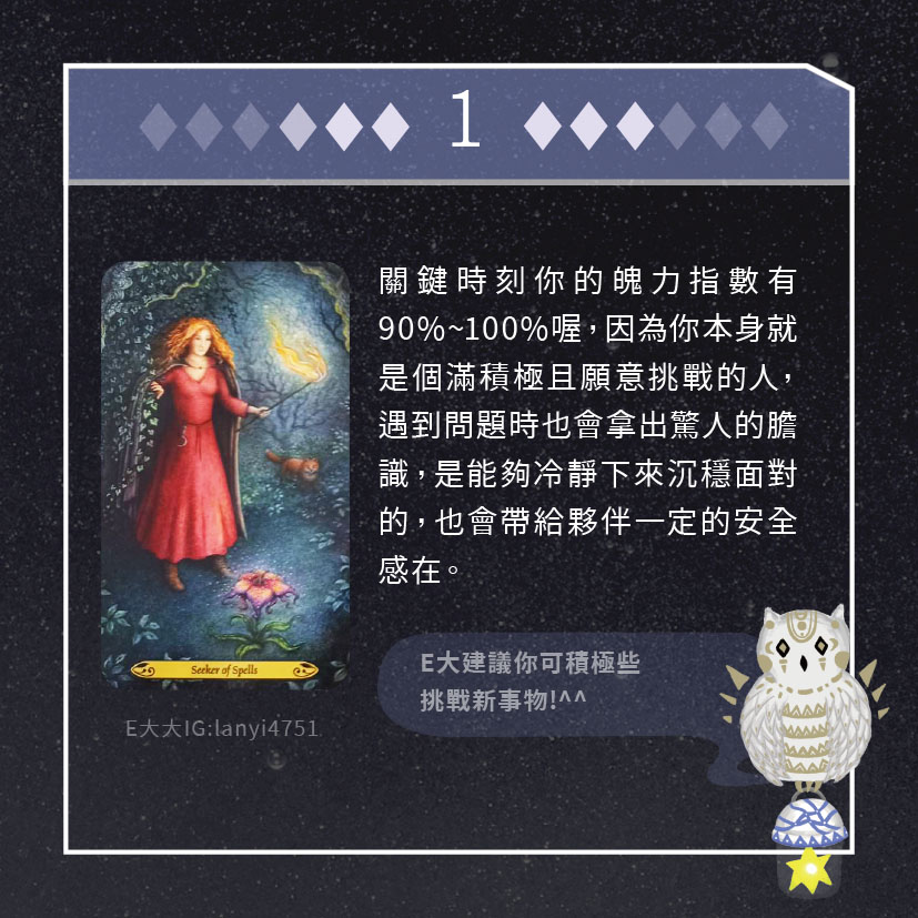 嗨~我是E大,歡迎你來到我的塔羅世界,每天會跟大家分享有趣的塔牌測驗,及塔羅知識喔!