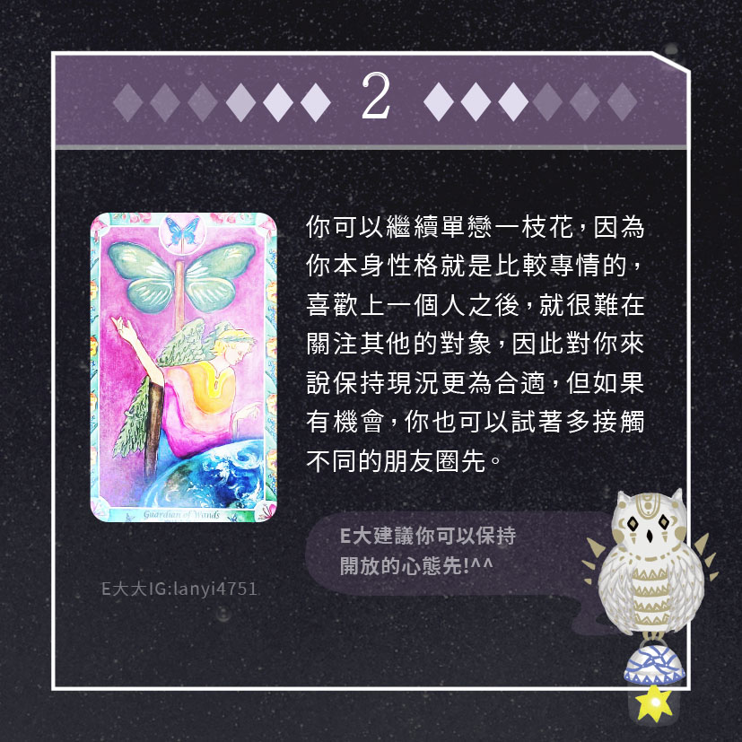 嗨~我是E大,歡迎你來到我的塔羅世界,每天會跟大家分享有趣的塔牌測驗,及塔羅知識喔!