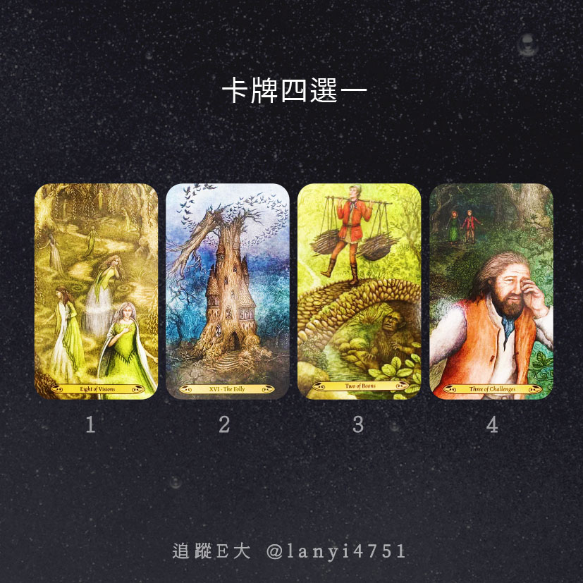 嗨~我是E大,歡迎你來到我的塔羅世界,每天會跟大家分享有趣的塔牌測驗,及塔羅知識喔!