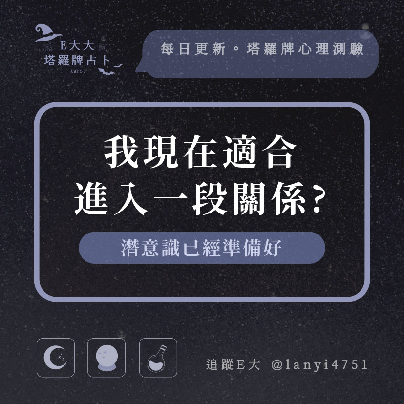 嗨~我是E大,歡迎你來到我的塔羅世界,每天會跟大家分享有趣的塔牌測驗,及塔羅知識喔!